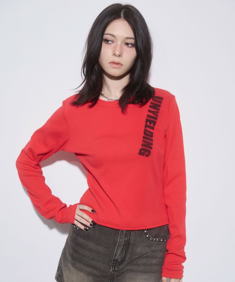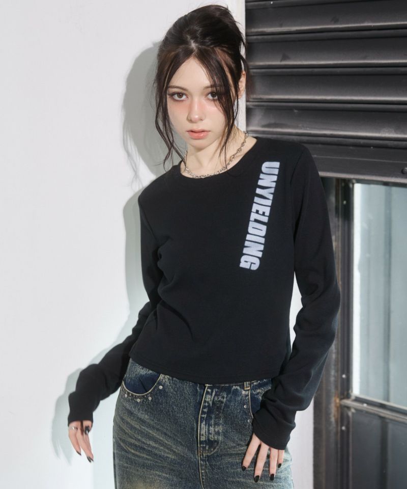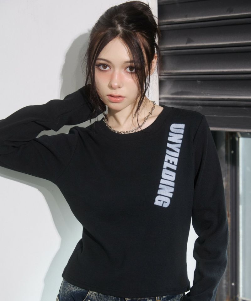 -------------------------------------------------- ■ポイント スプレー風のプリントが今年らしいトップス。 ■ディティール 着用しやすい、程よい肉厚感のカットリブ生地を使用したトップス。 コンパクトなサイズ感にしているので着回しやすいのが嬉しい。 縦に入ったロゴプリントが他にはなく目を引くアイテムです。 ■スタイリング カジュアルにデニムスタイリングがおすすめ! インナーとしても重宝します。 --------------------------------------------------