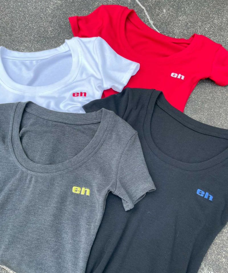 伸縮性のあるカットソー生地を使用したTシャツ。