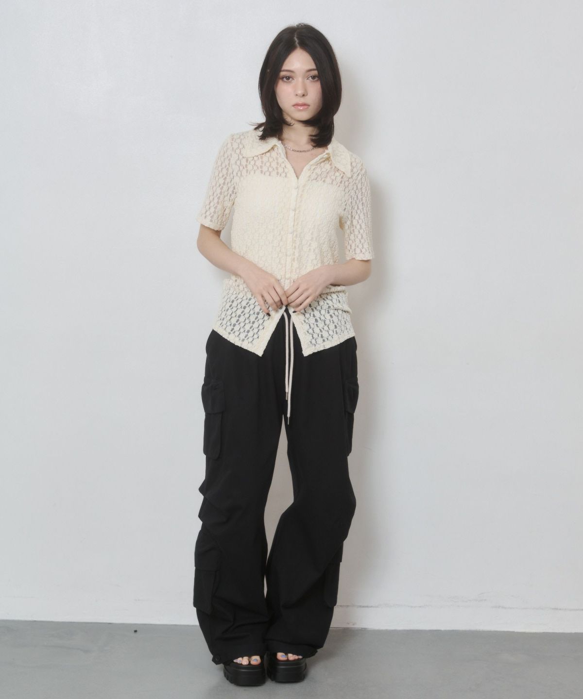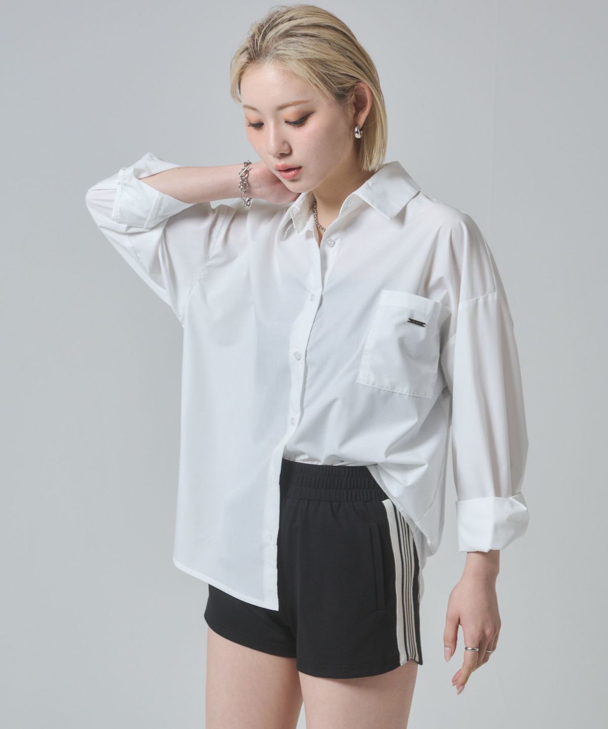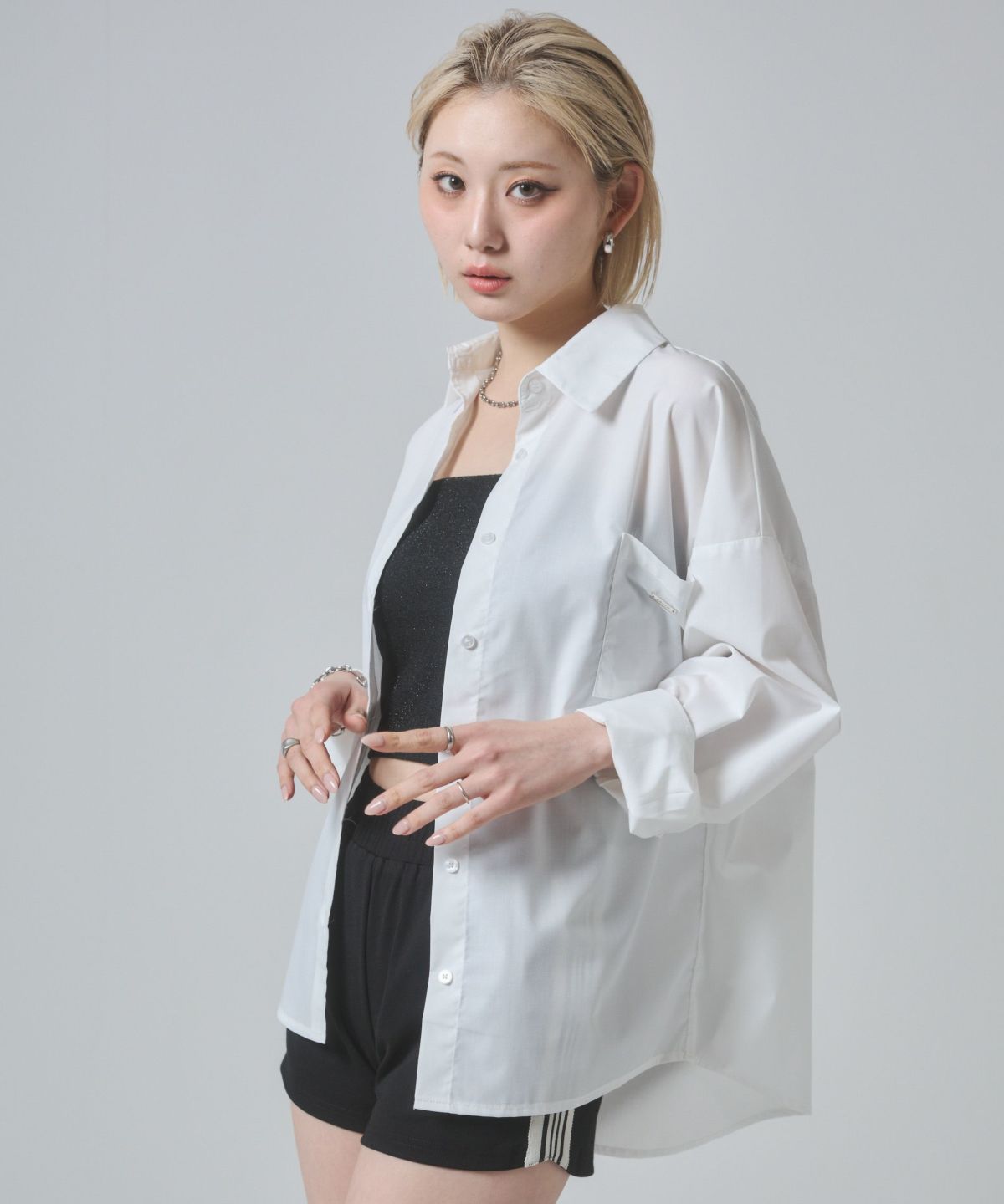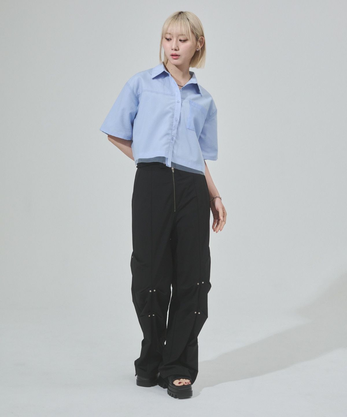 【70%OFF】 ブロード チュール被せ半袖シャツ
