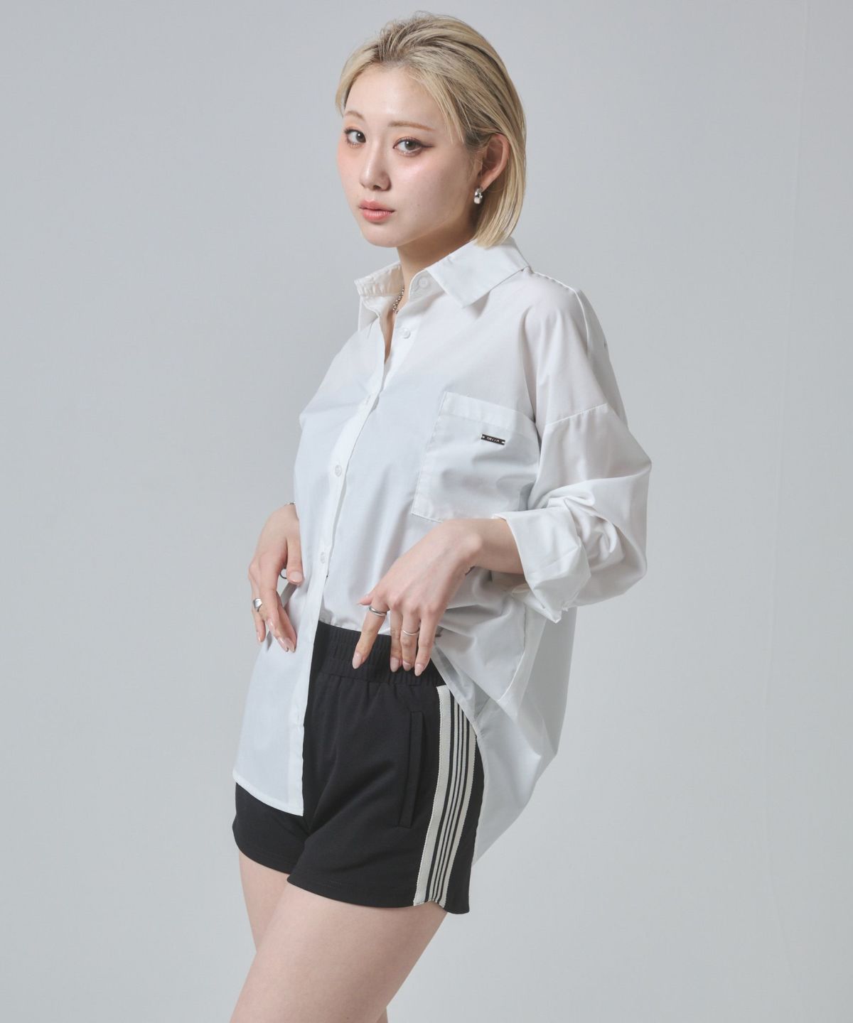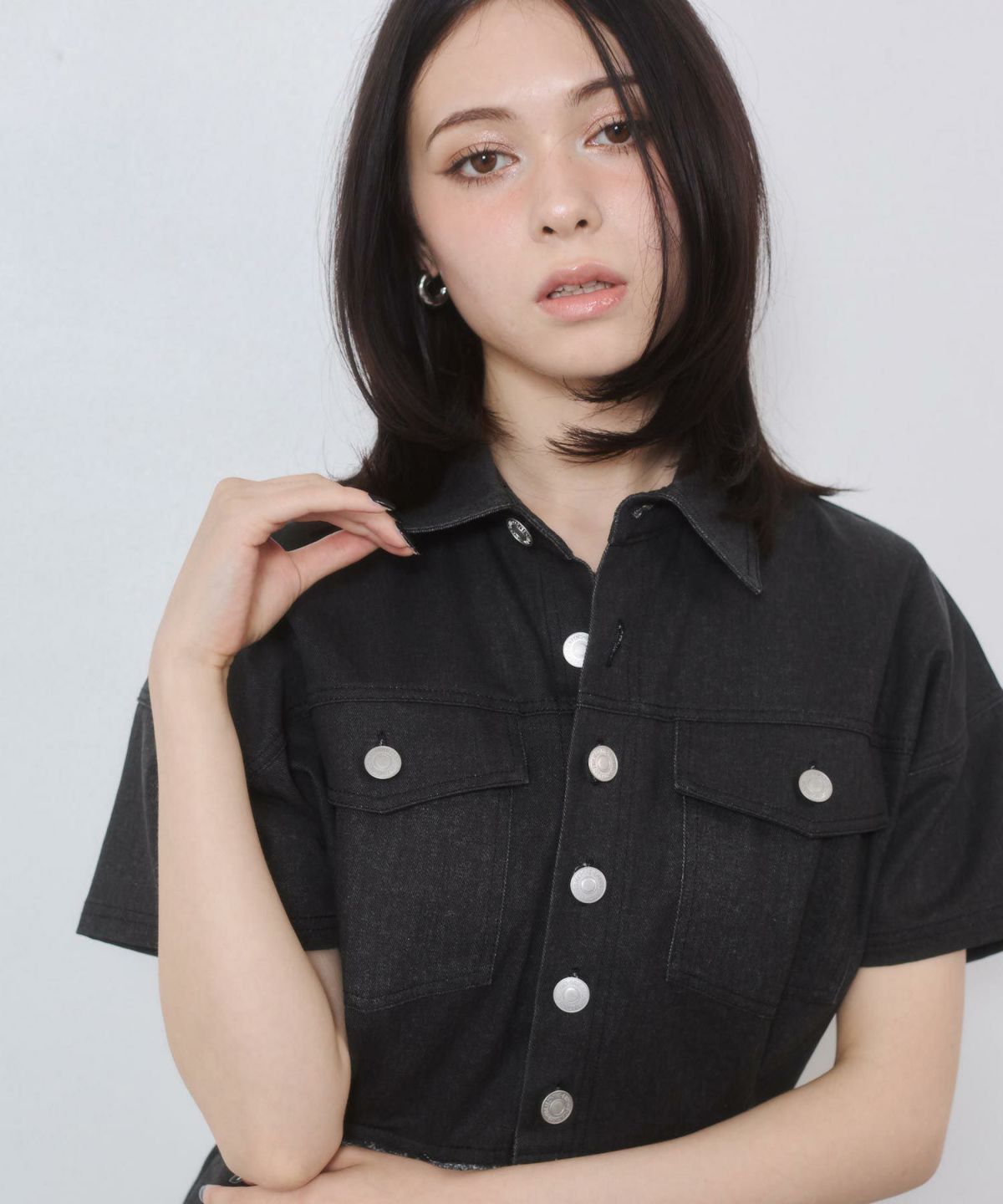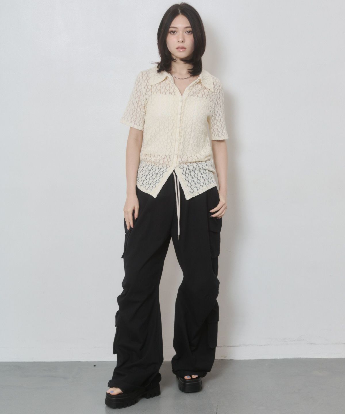 【70%OFF】 ブロード チュール被せ半袖シャツ