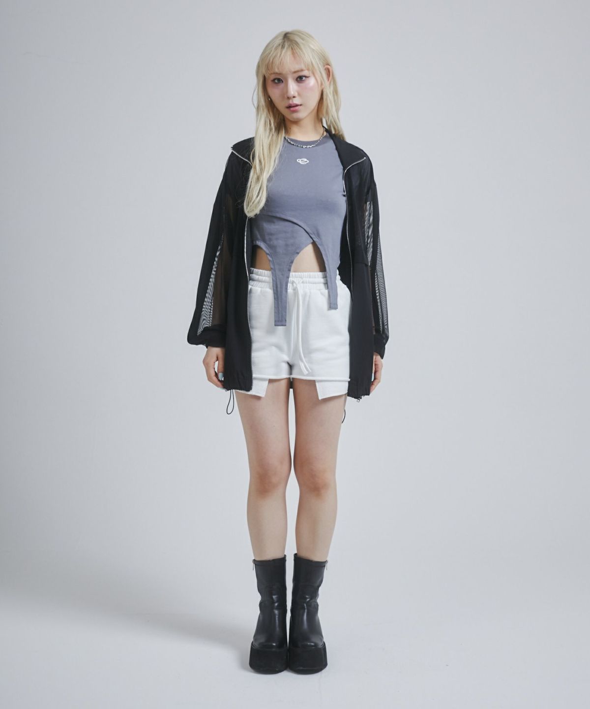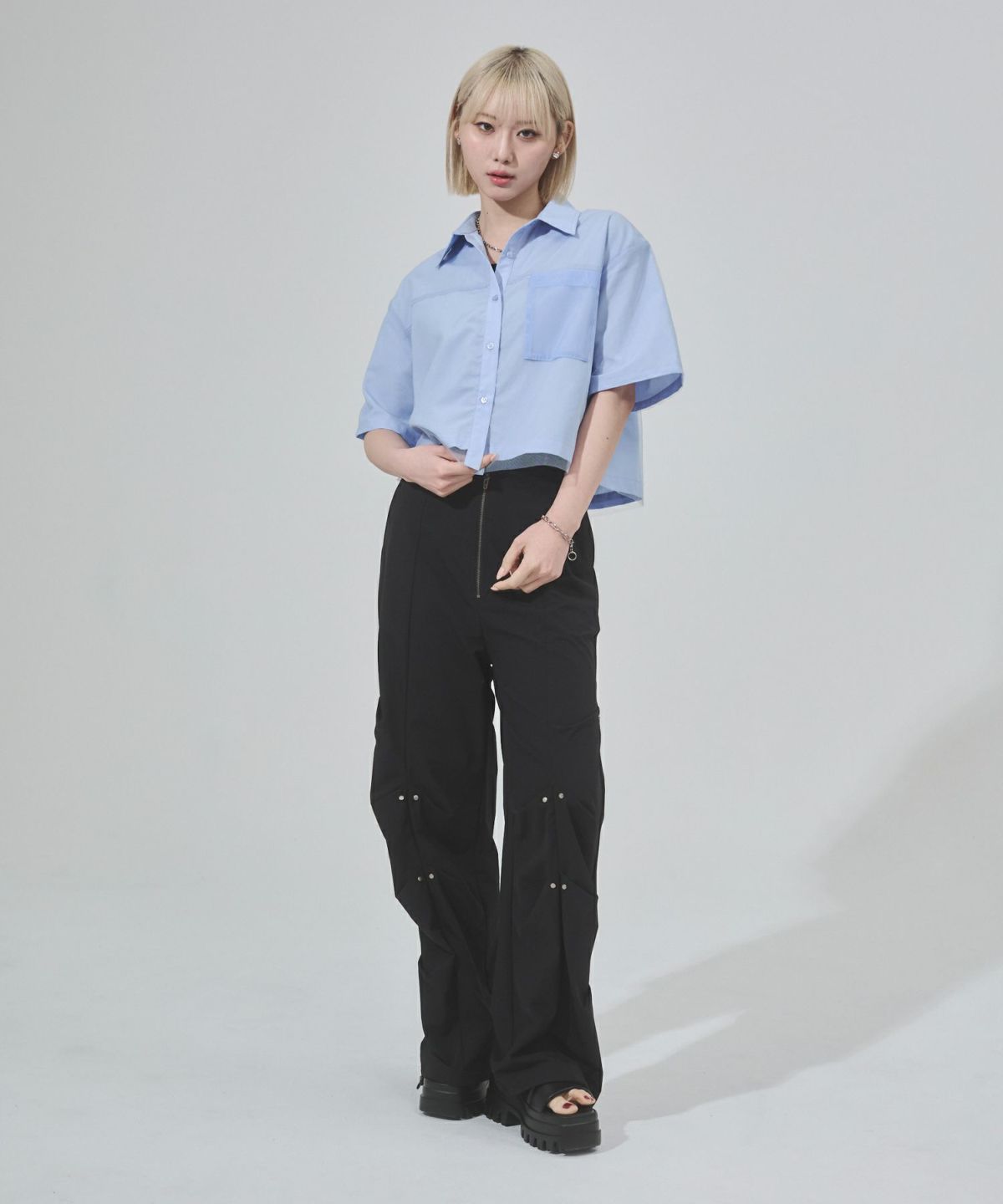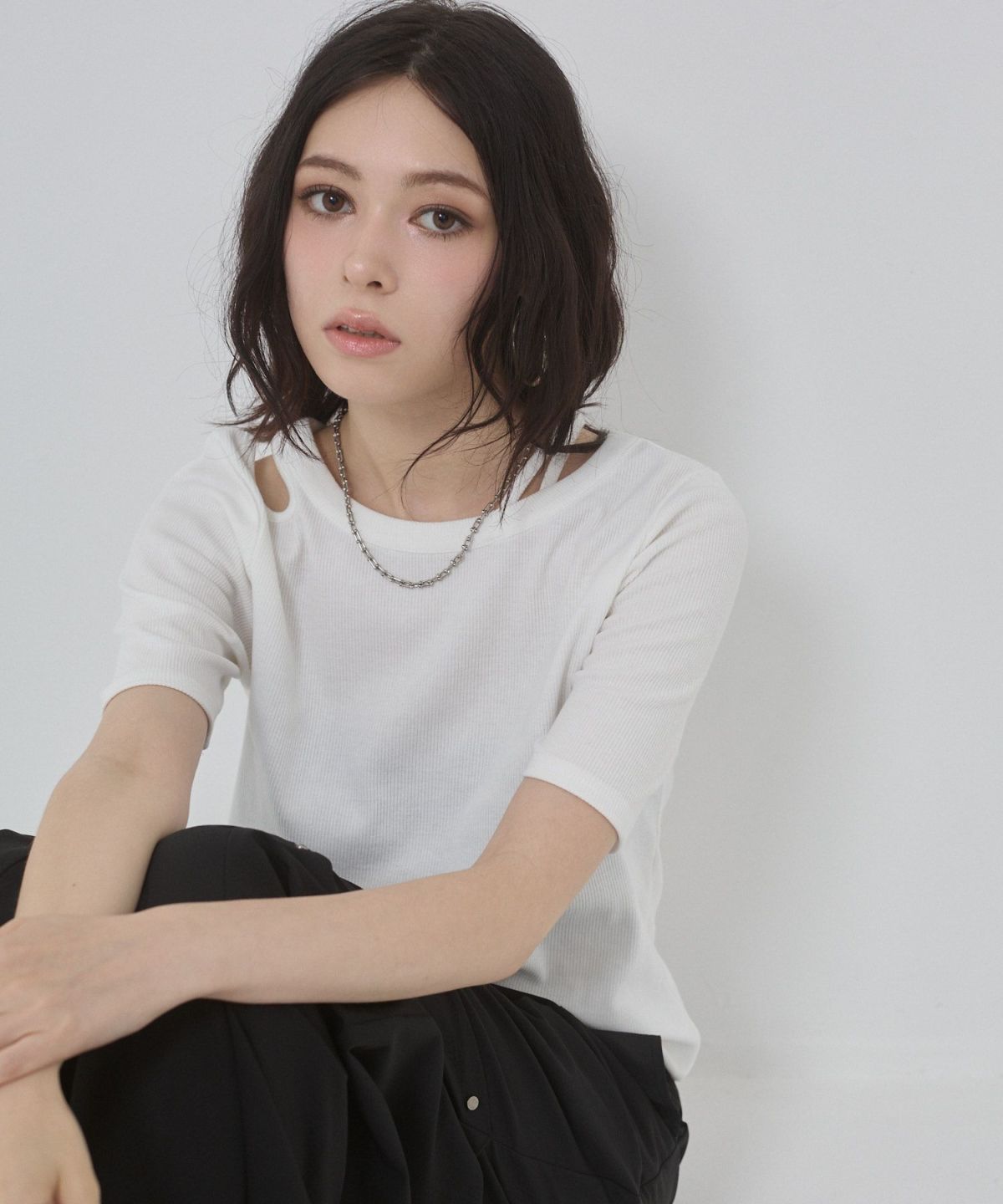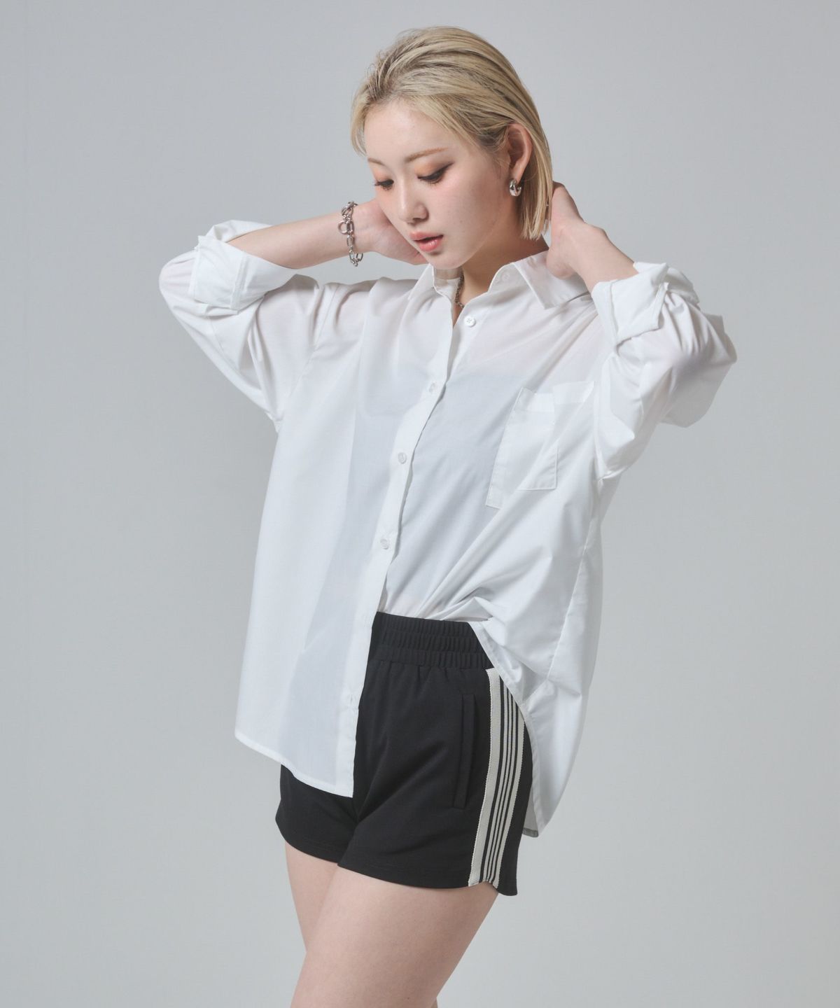 【70%OFF】 ブロード チュール被せ半袖シャツ
