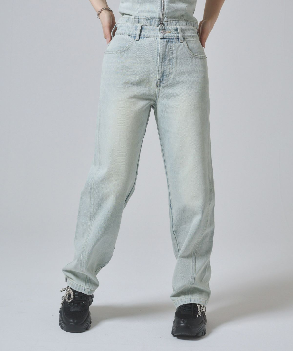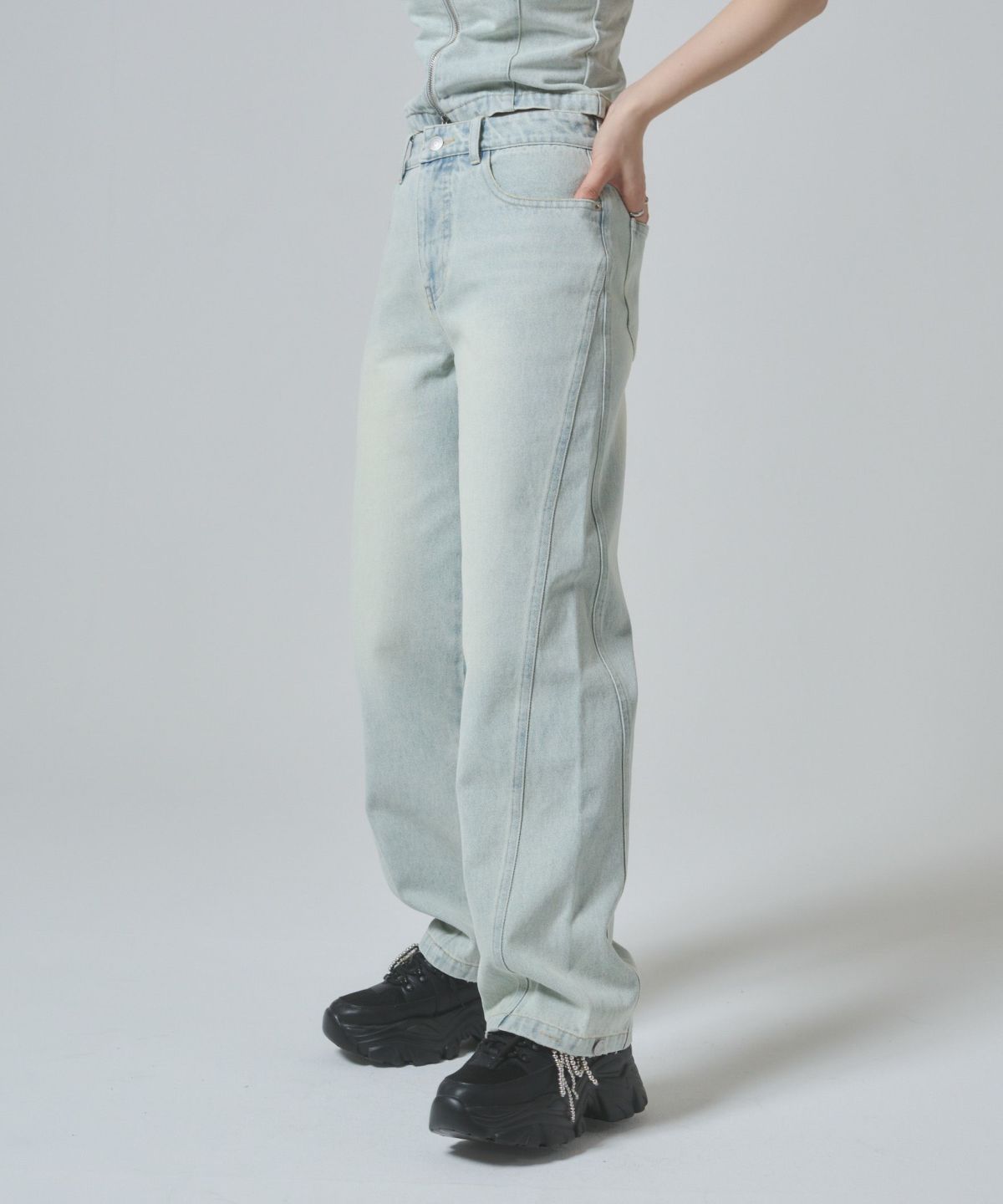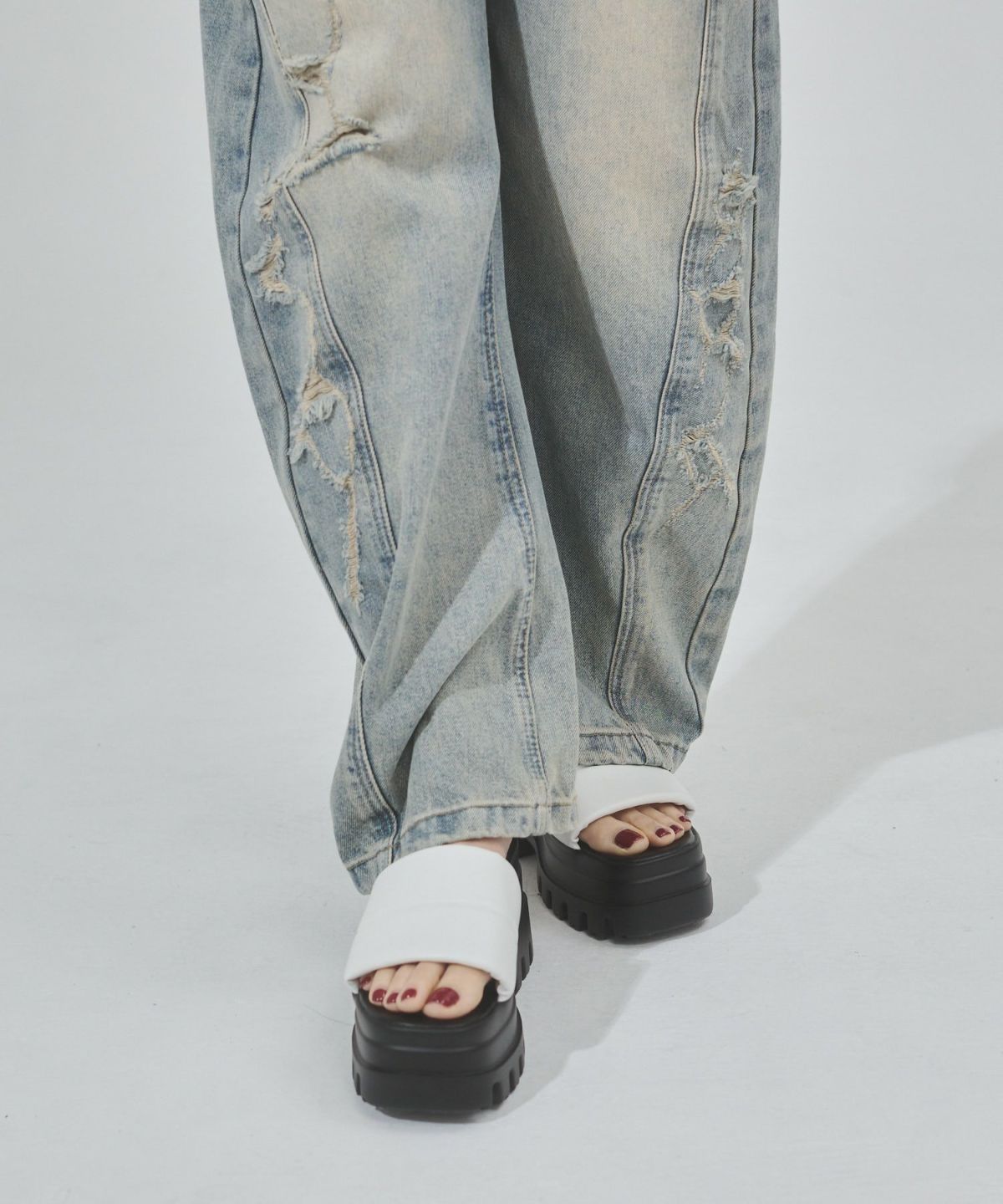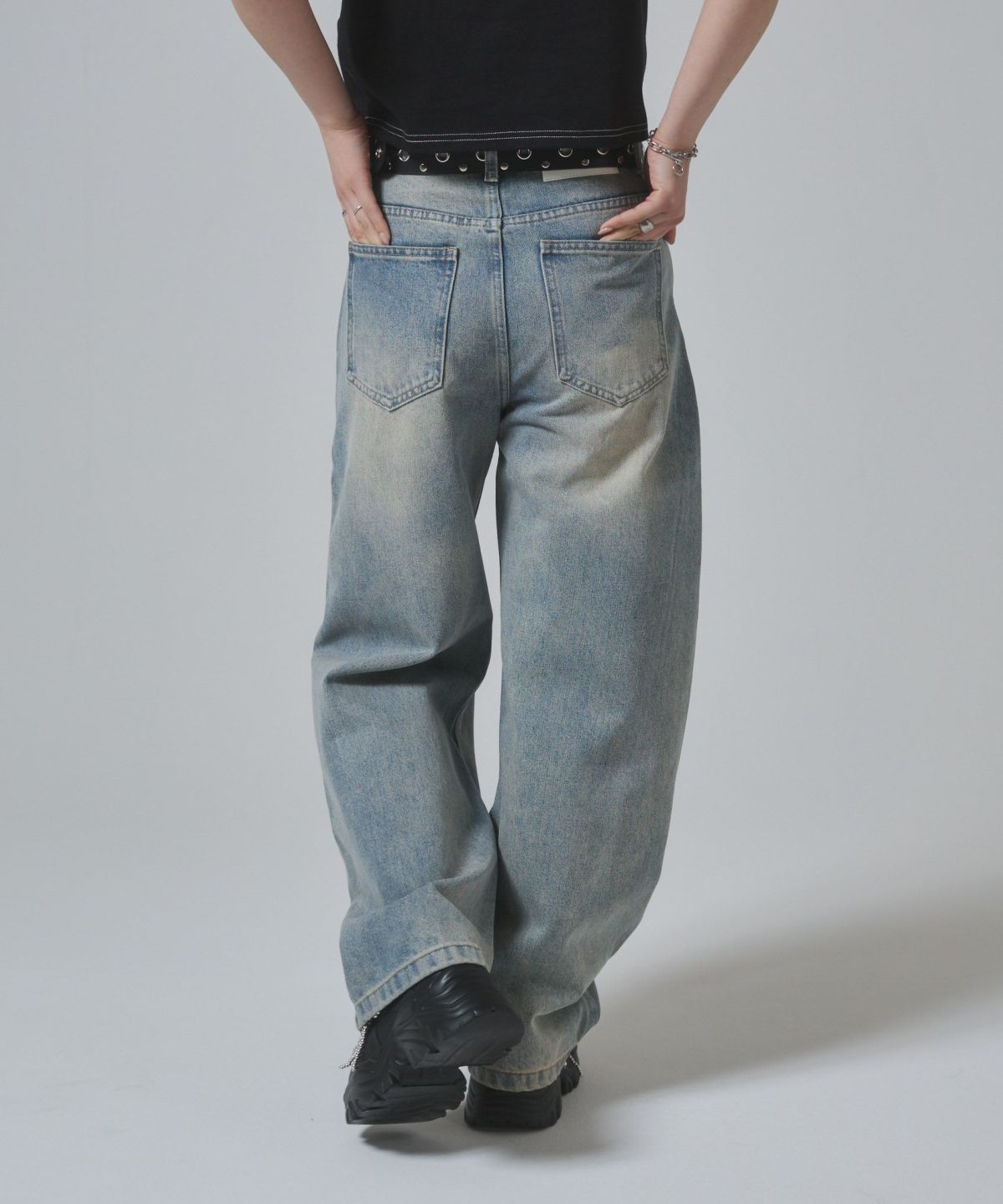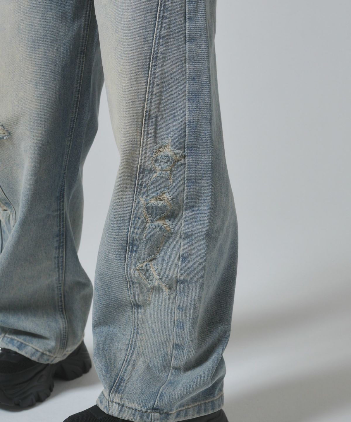 【70%OFF】 カーブラインクラッシュデニムパンツ