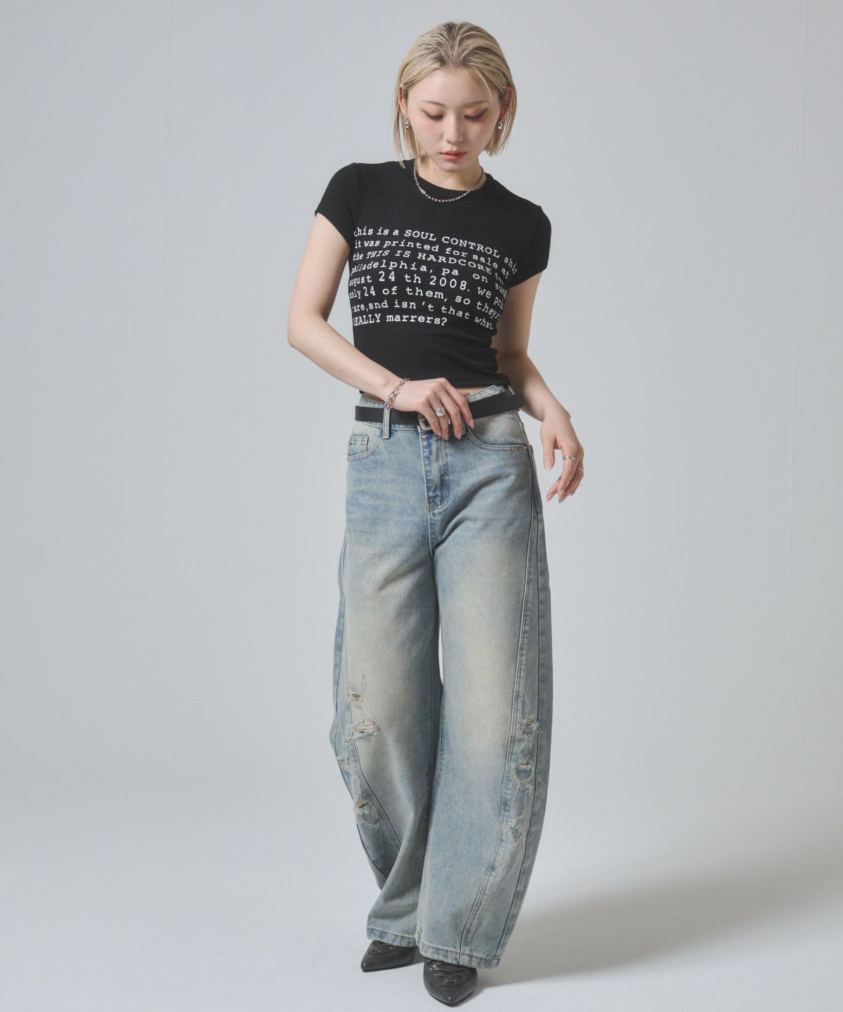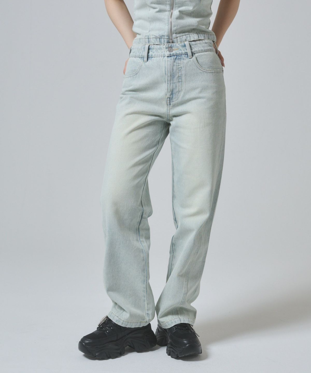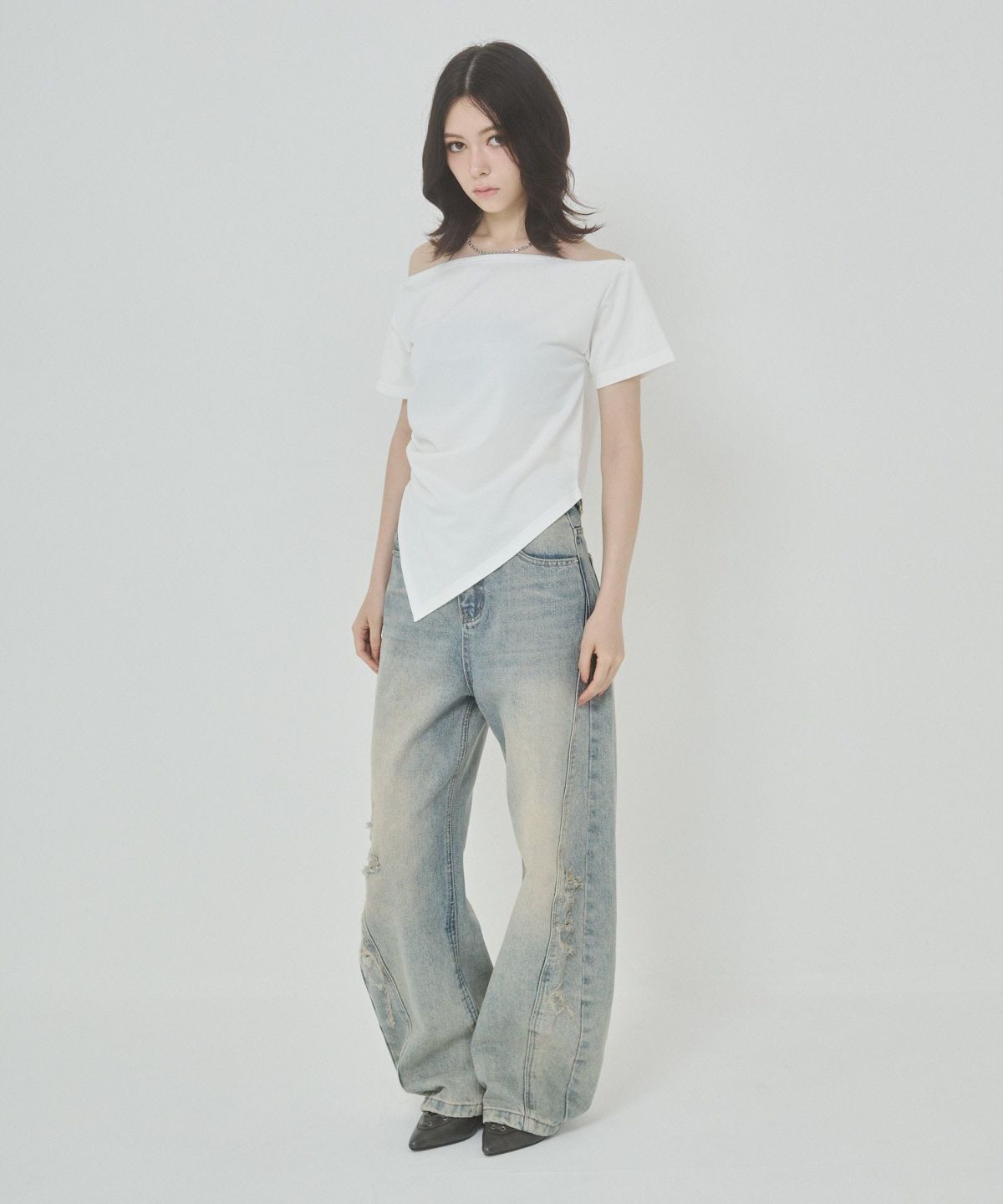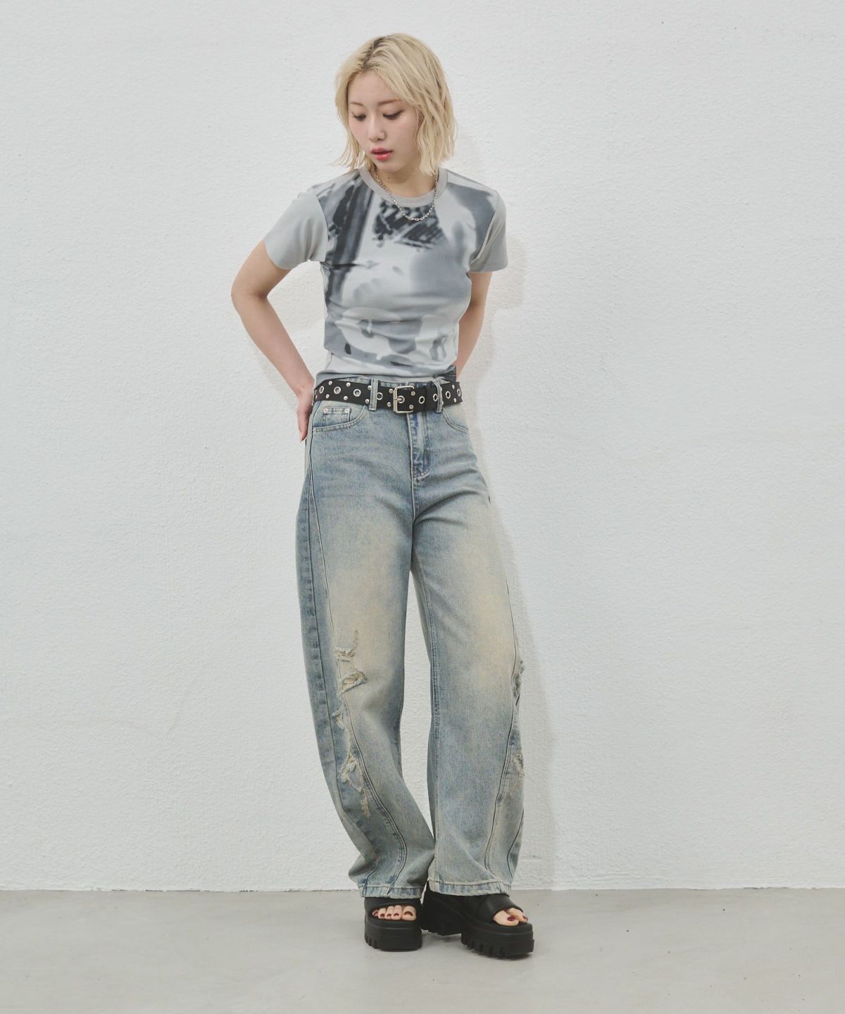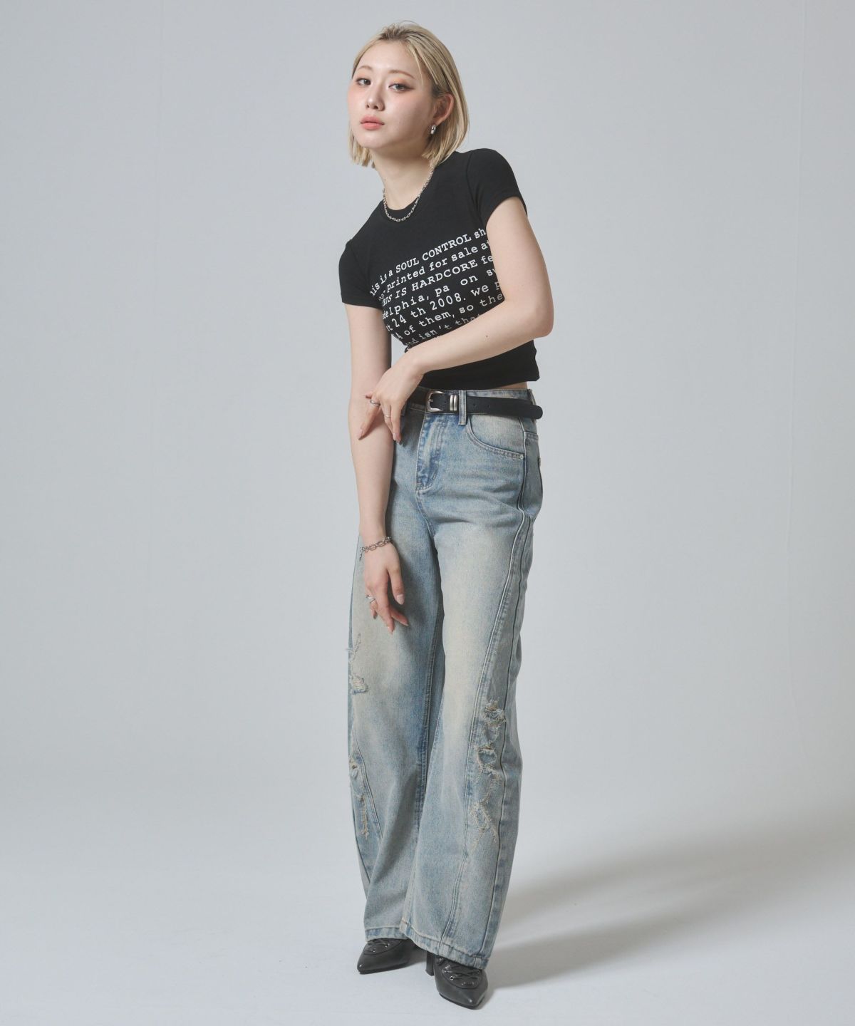 【70%OFF】 カーブラインクラッシュデニムパンツ