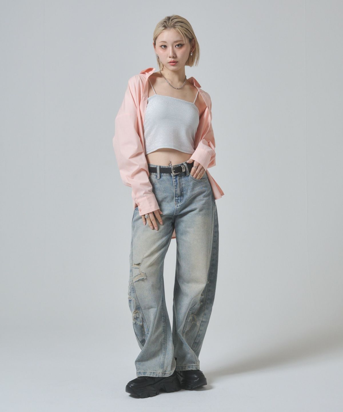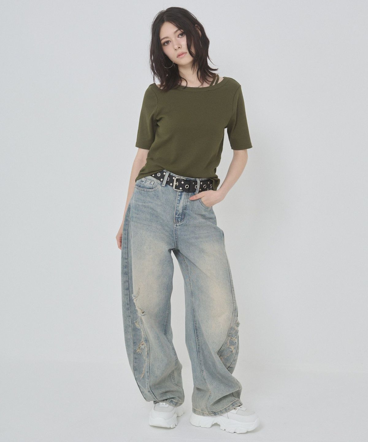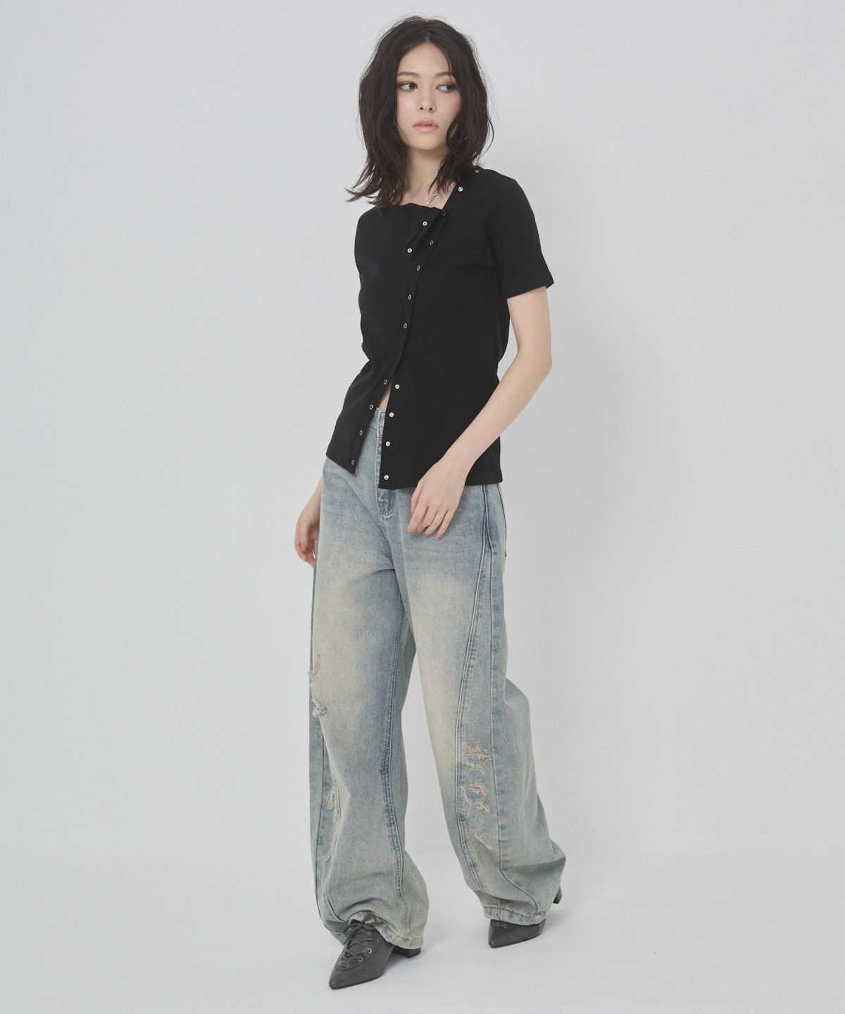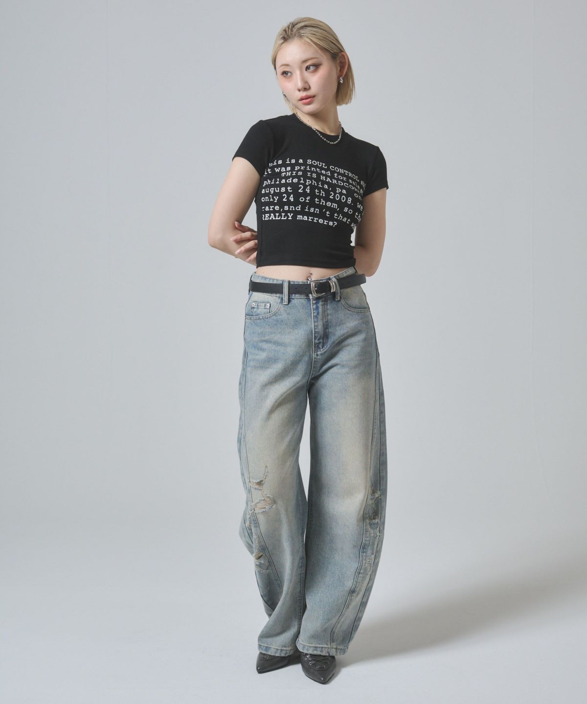 【70%OFF】 カーブラインクラッシュデニムパンツ