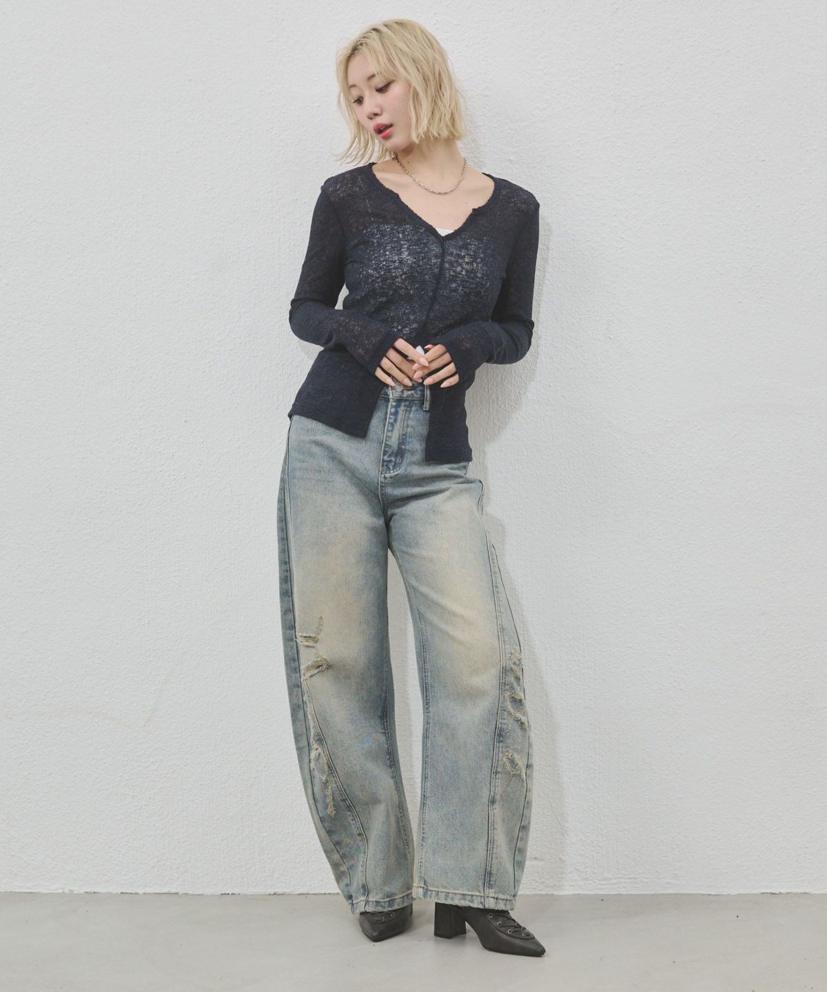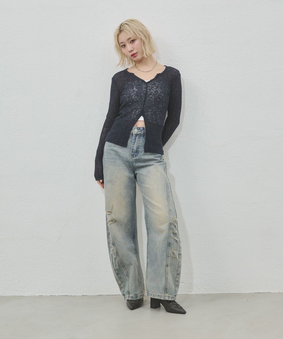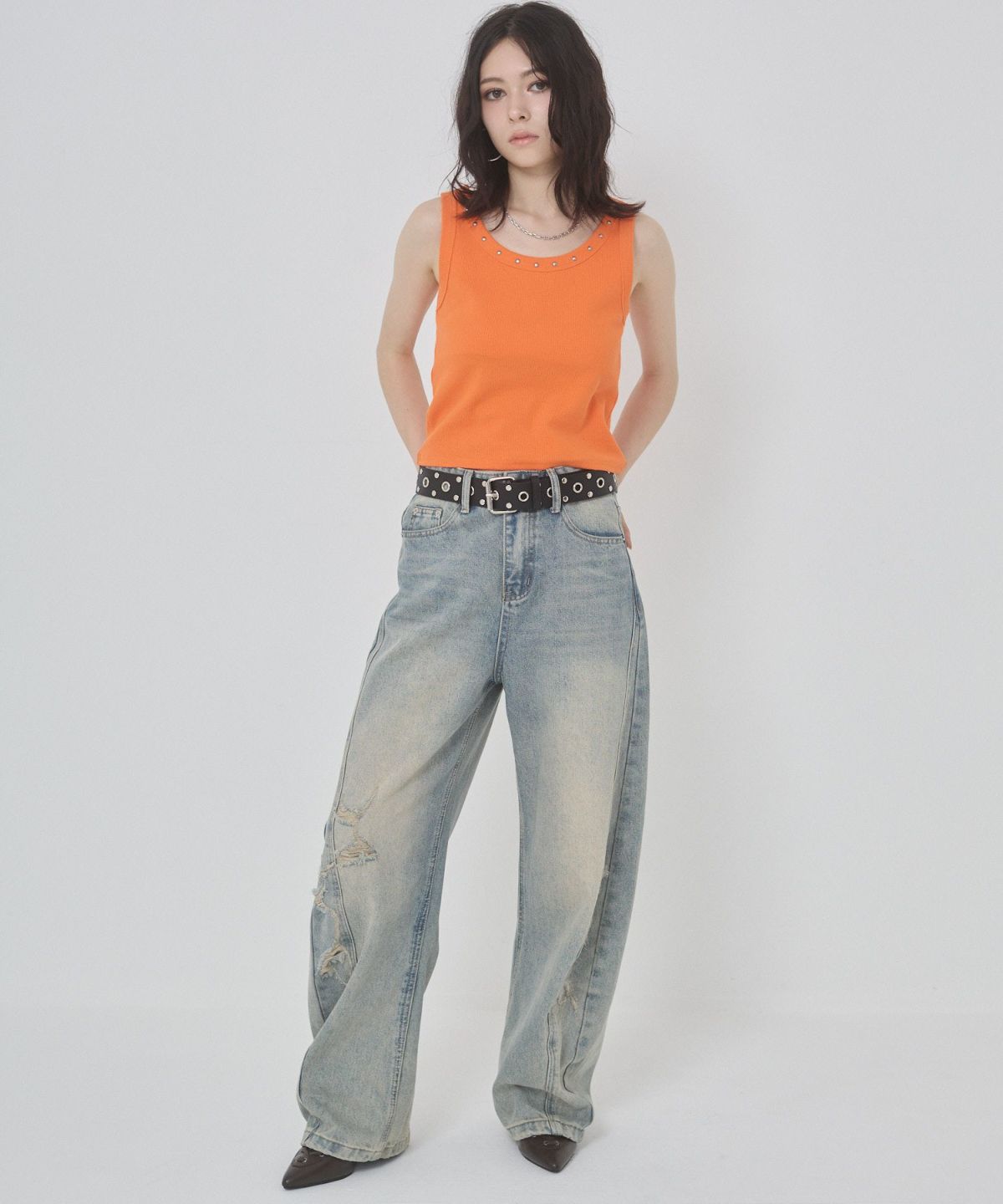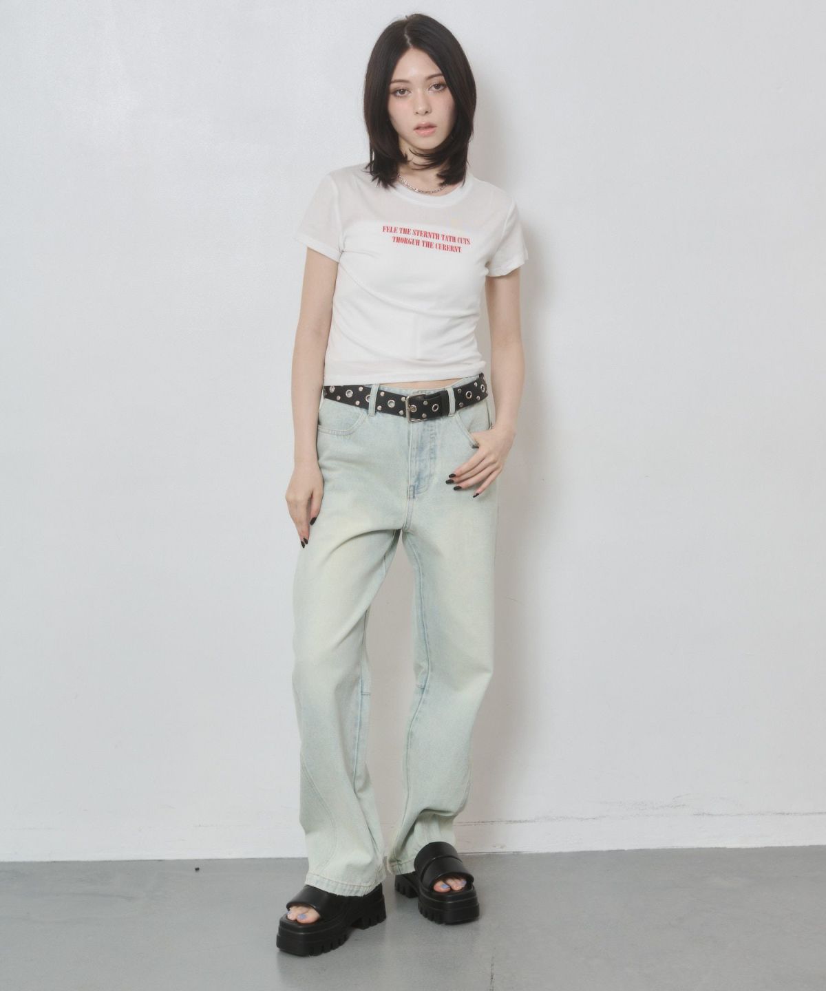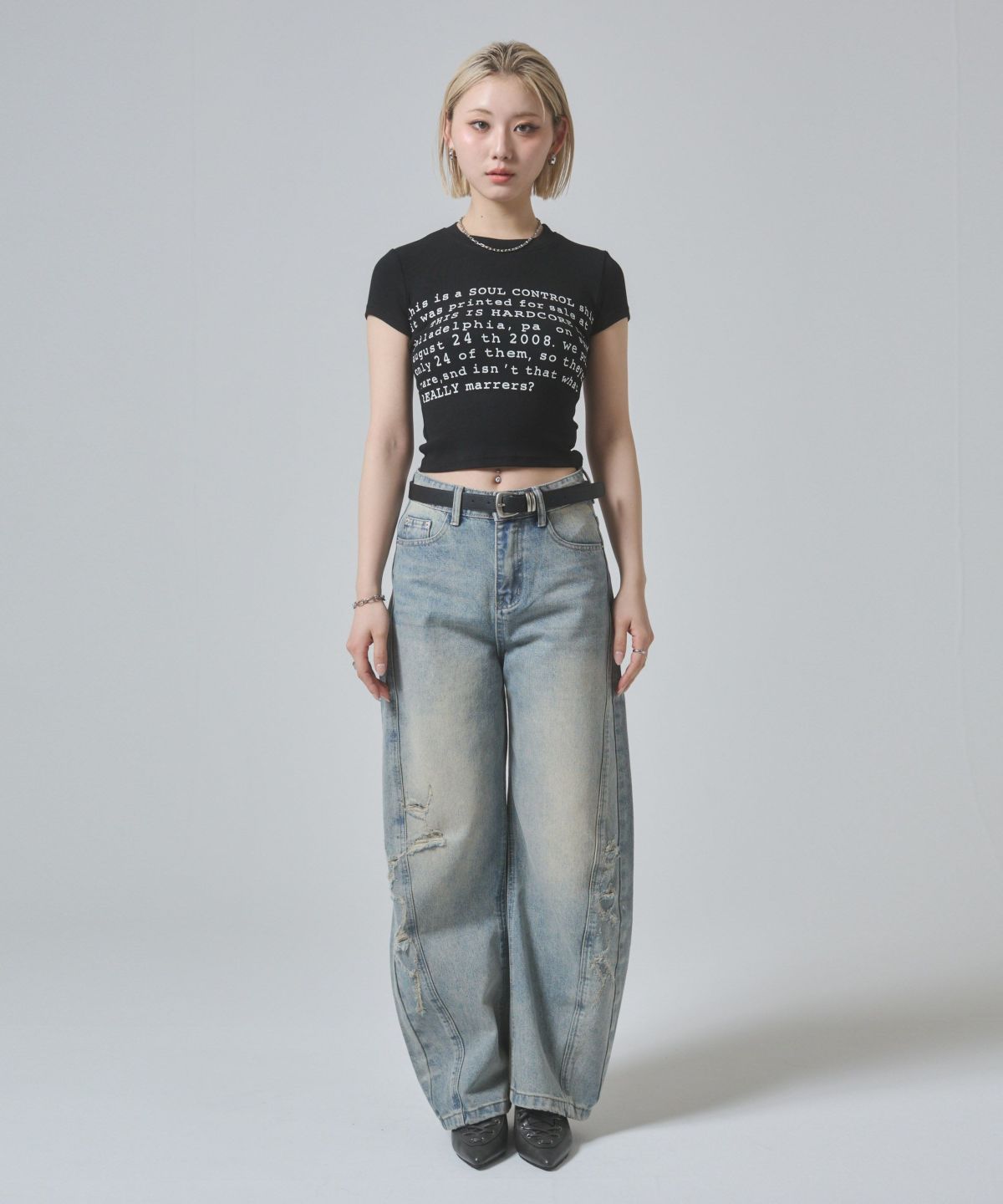 【70%OFF】 カーブラインクラッシュデニムパンツ