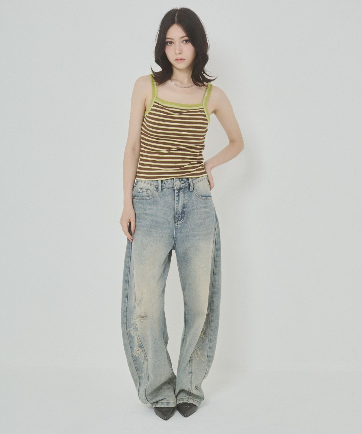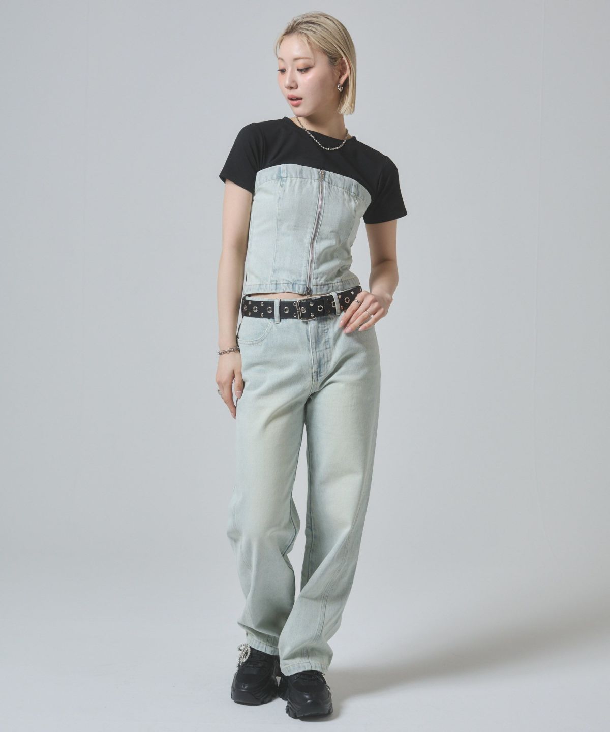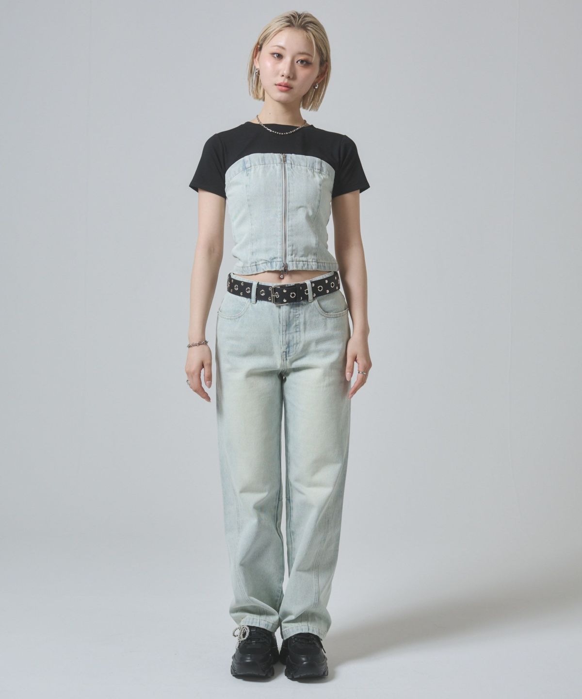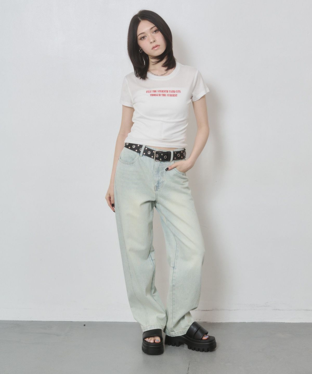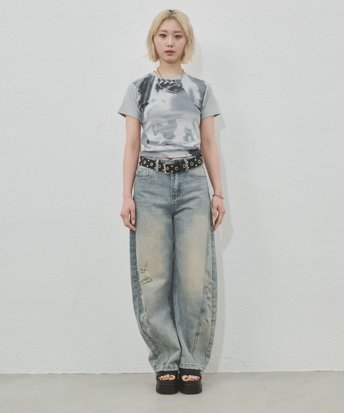 【70%OFF】 カーブラインクラッシュデニムパンツ