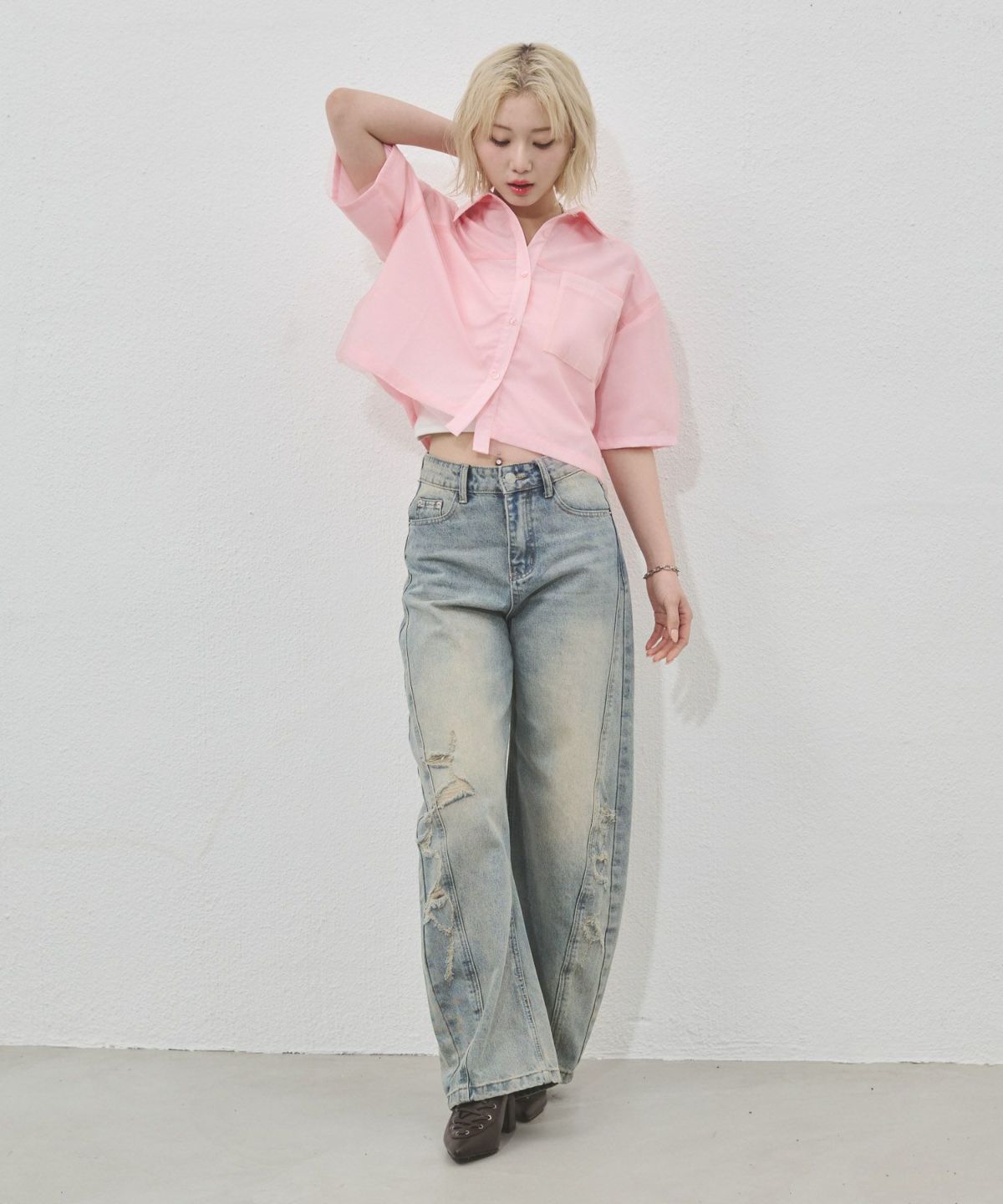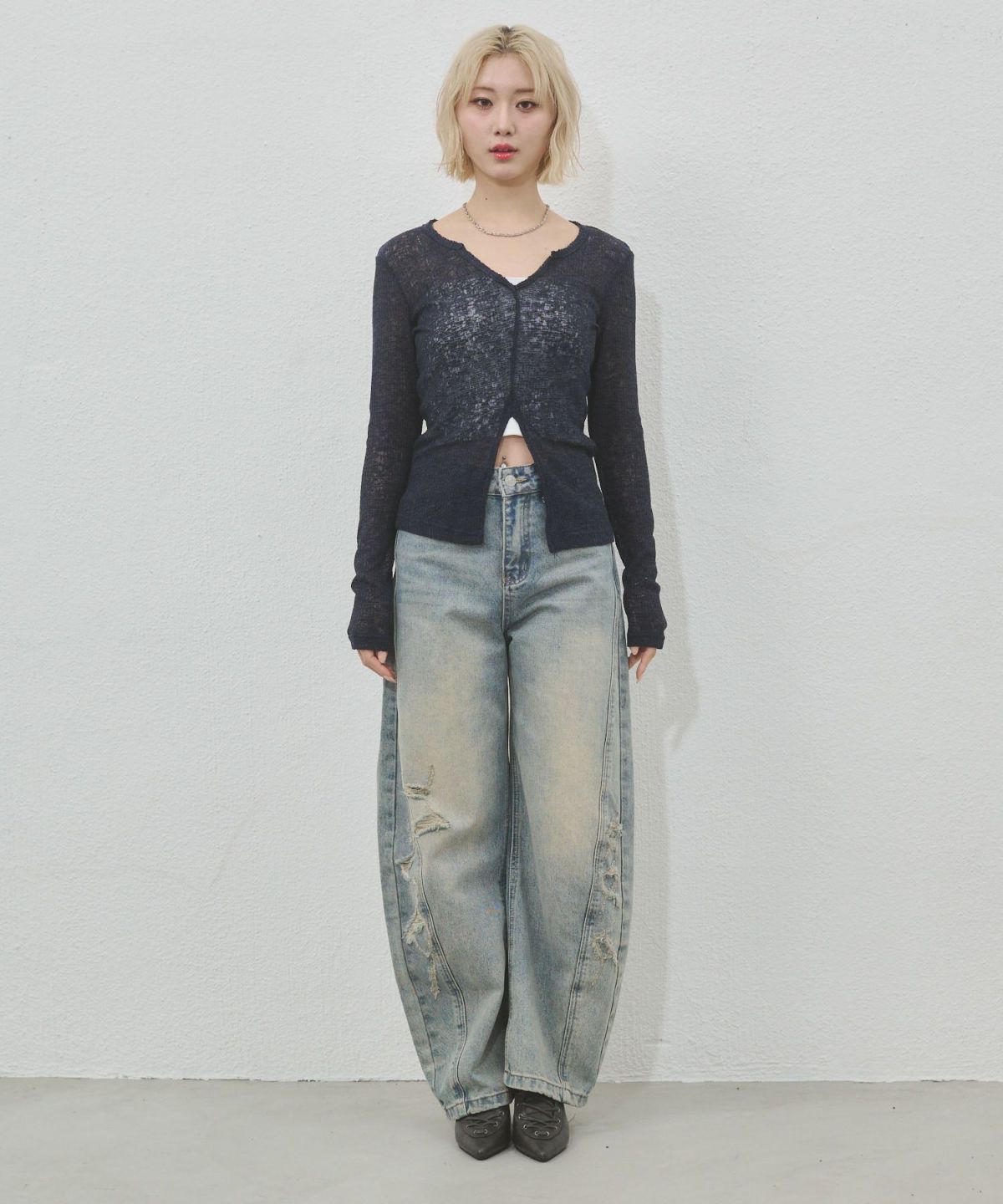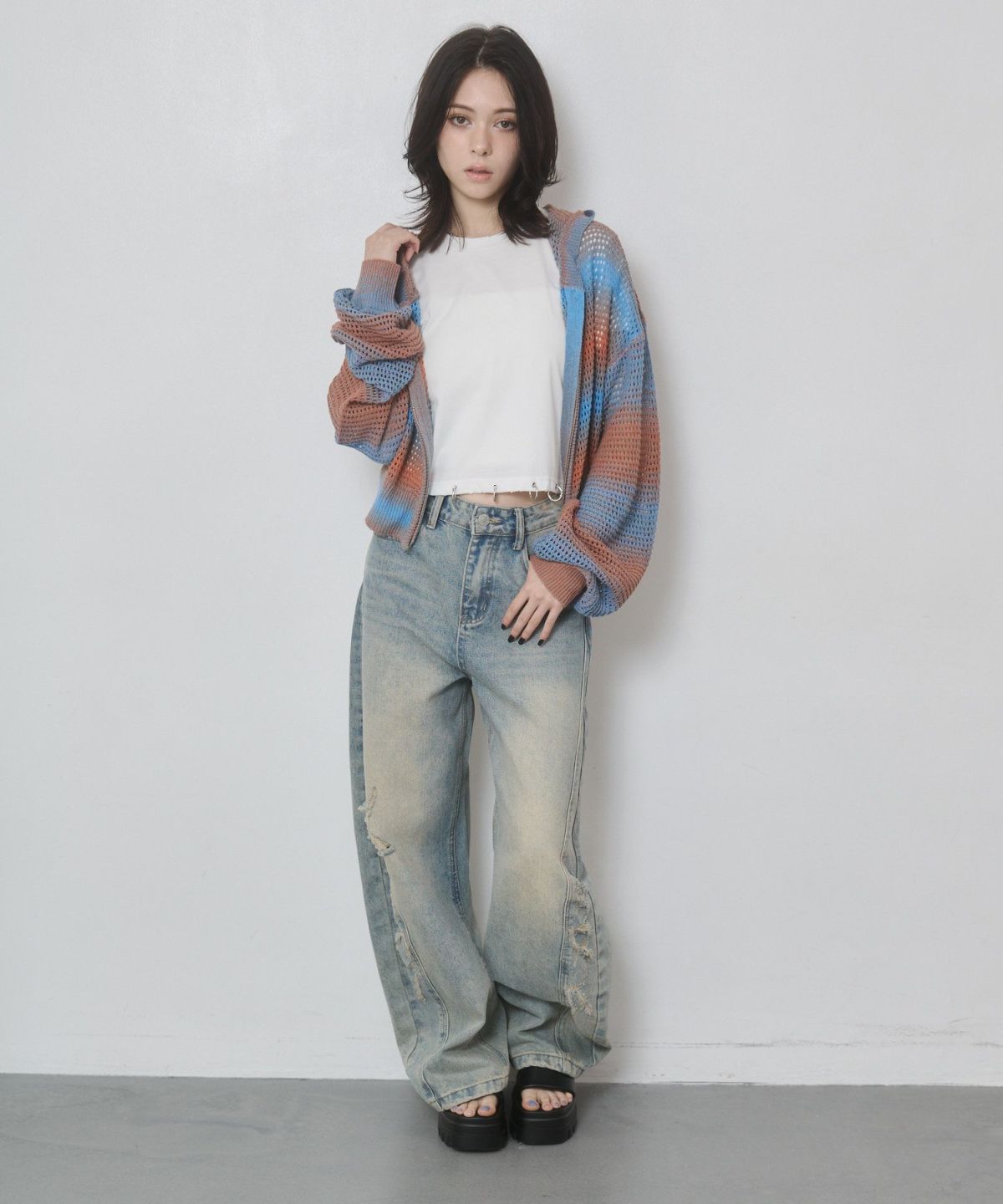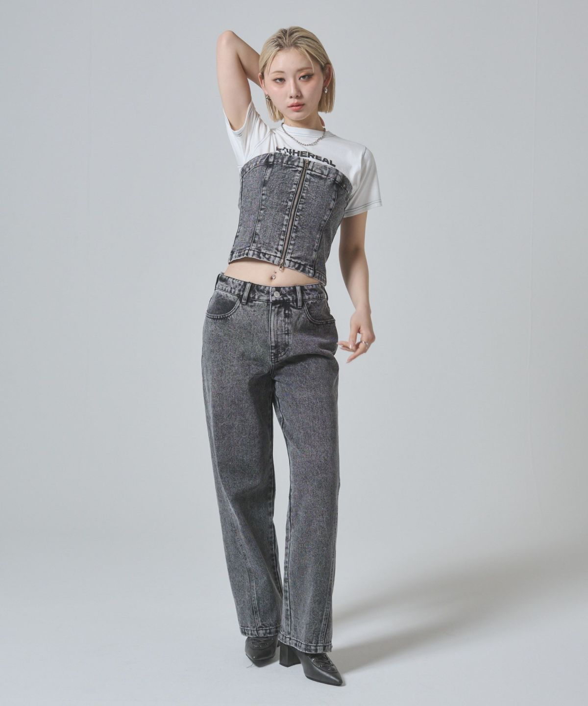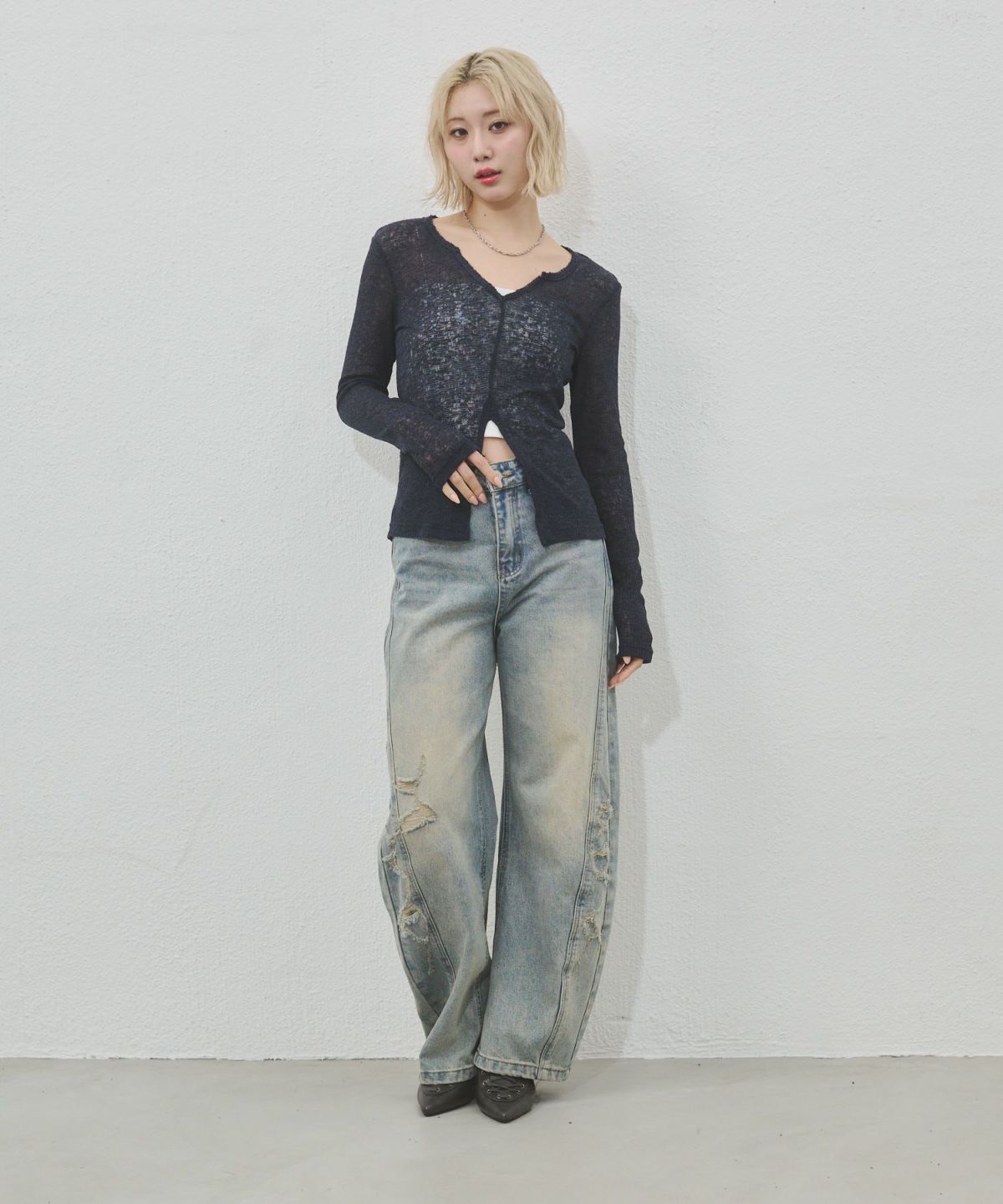 【70%OFF】 カーブラインクラッシュデニムパンツ