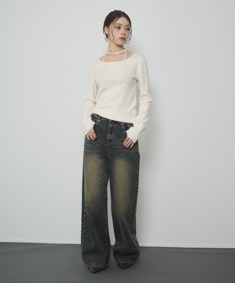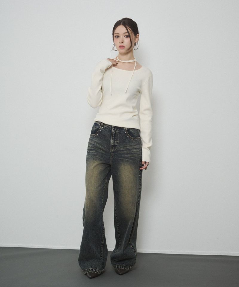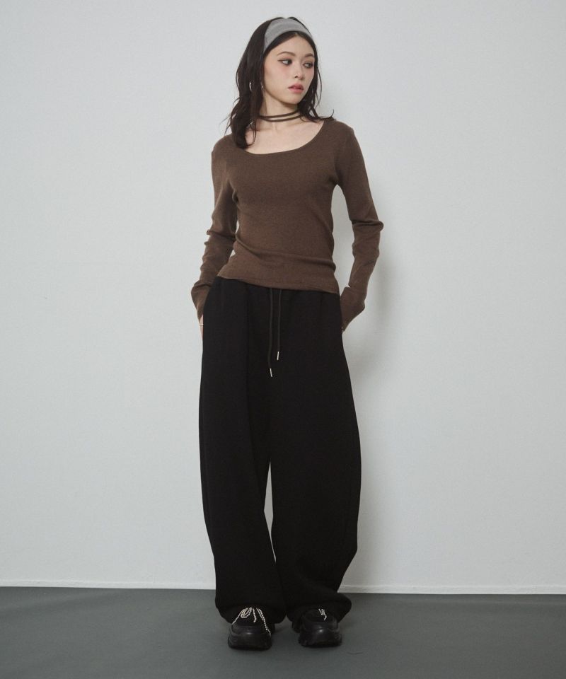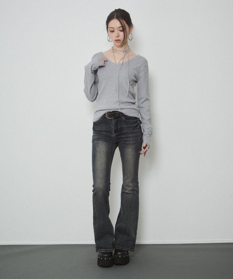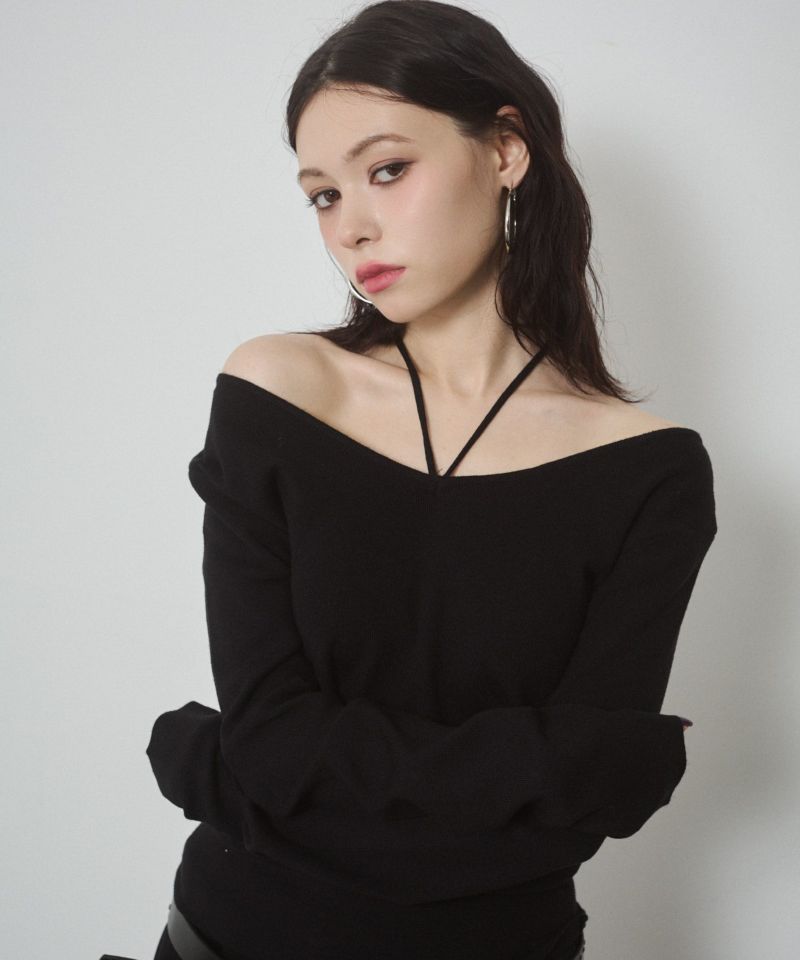 オフショルのようにして着用するのもOK!女性らしさがUPします。