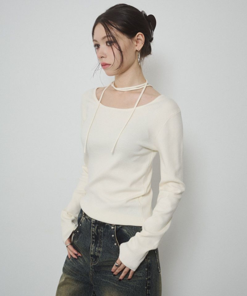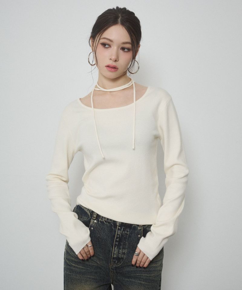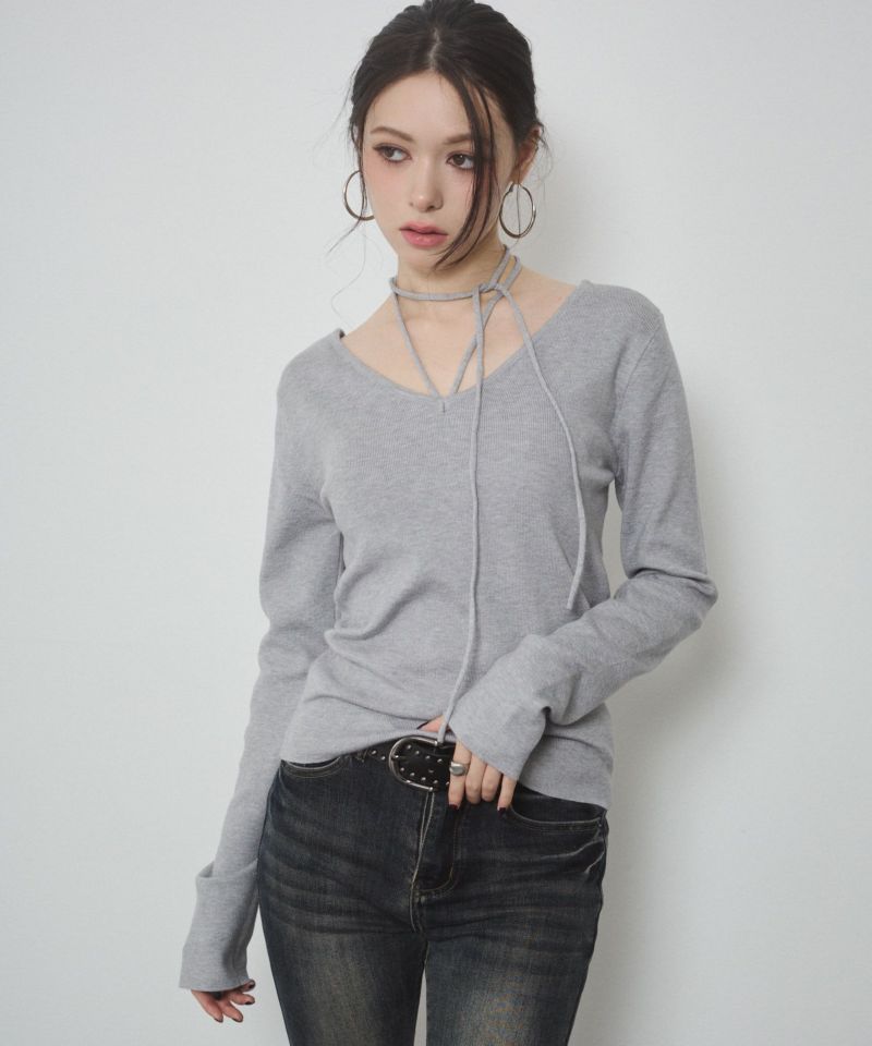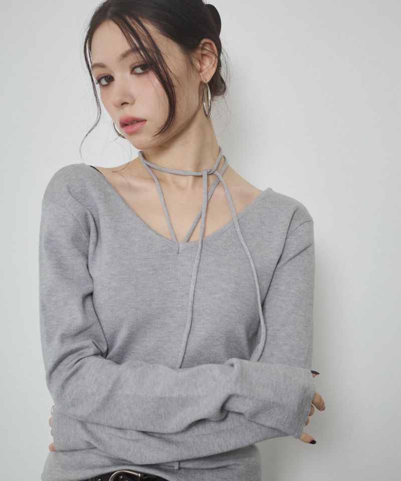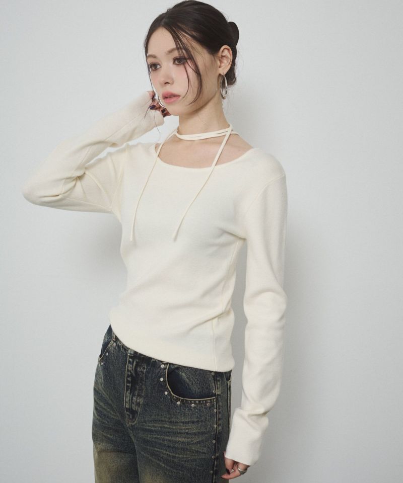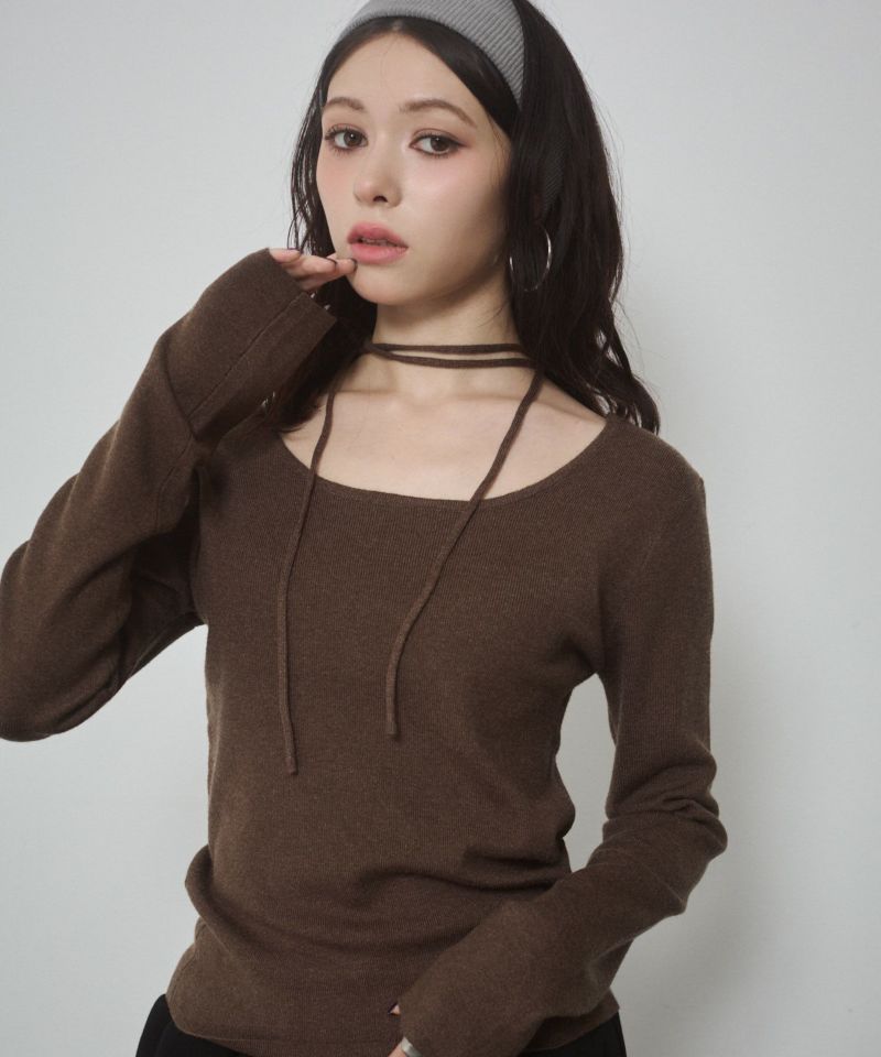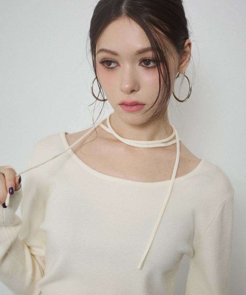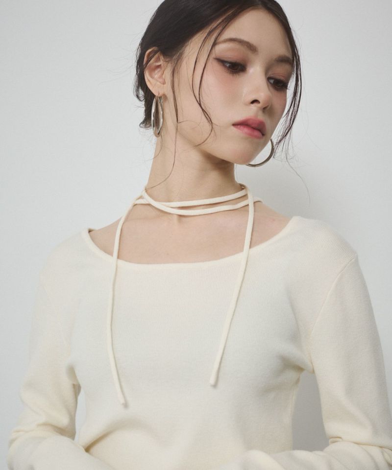 紐付きなのでチョーカー風に様々な結び方でアレンジできます。