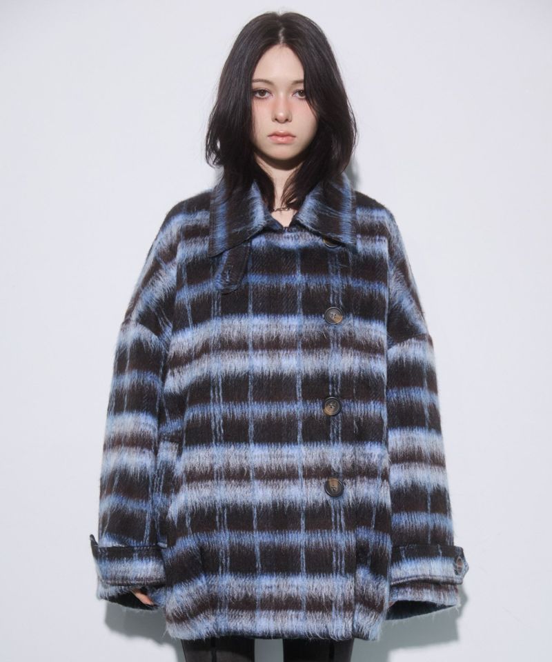 ボリューム感のあるコクーンシルエットが魅力のコート。