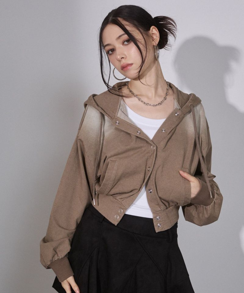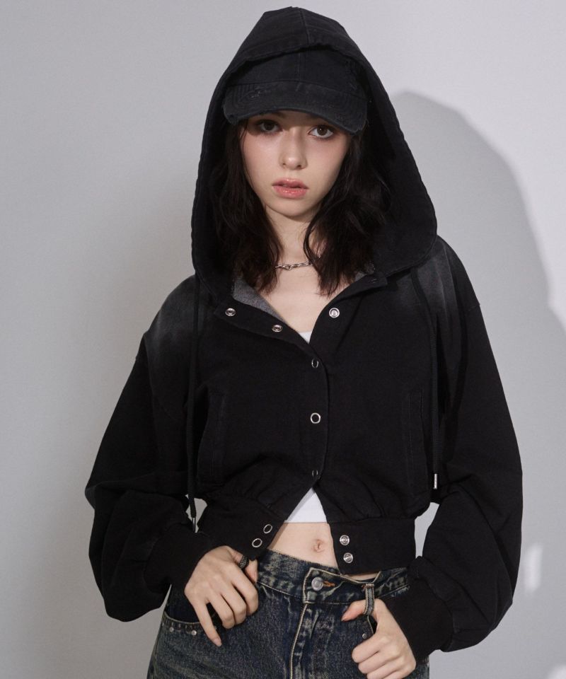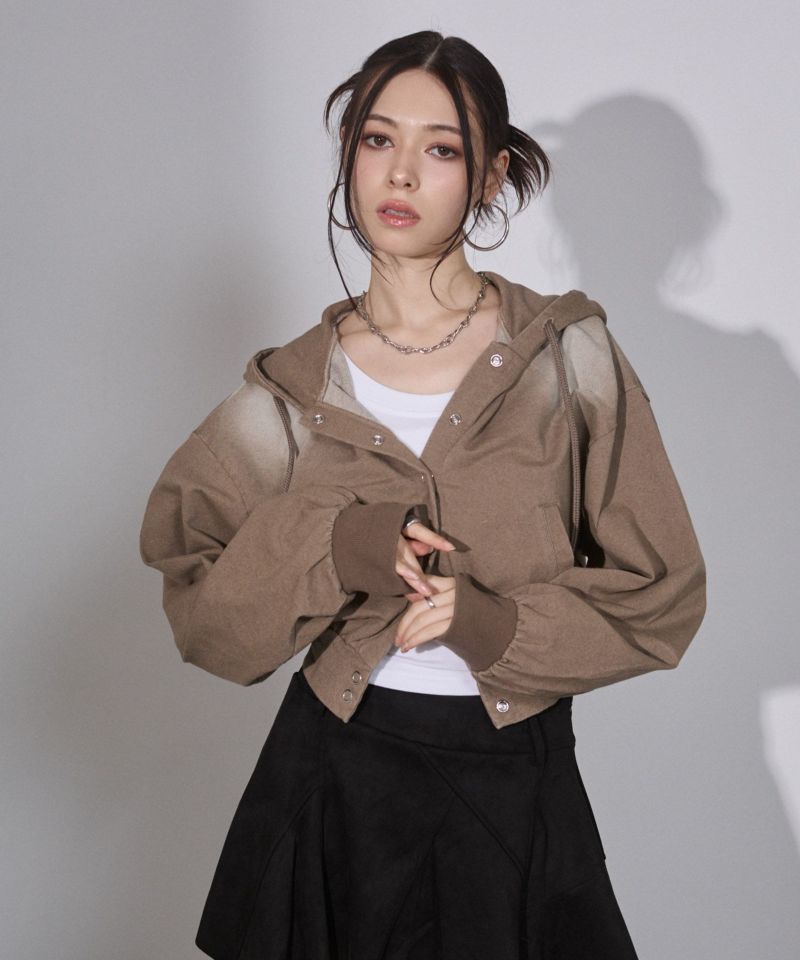 ウォッシュやアタリ加工の入った、デニムのような風合いが魅力のパーカー。