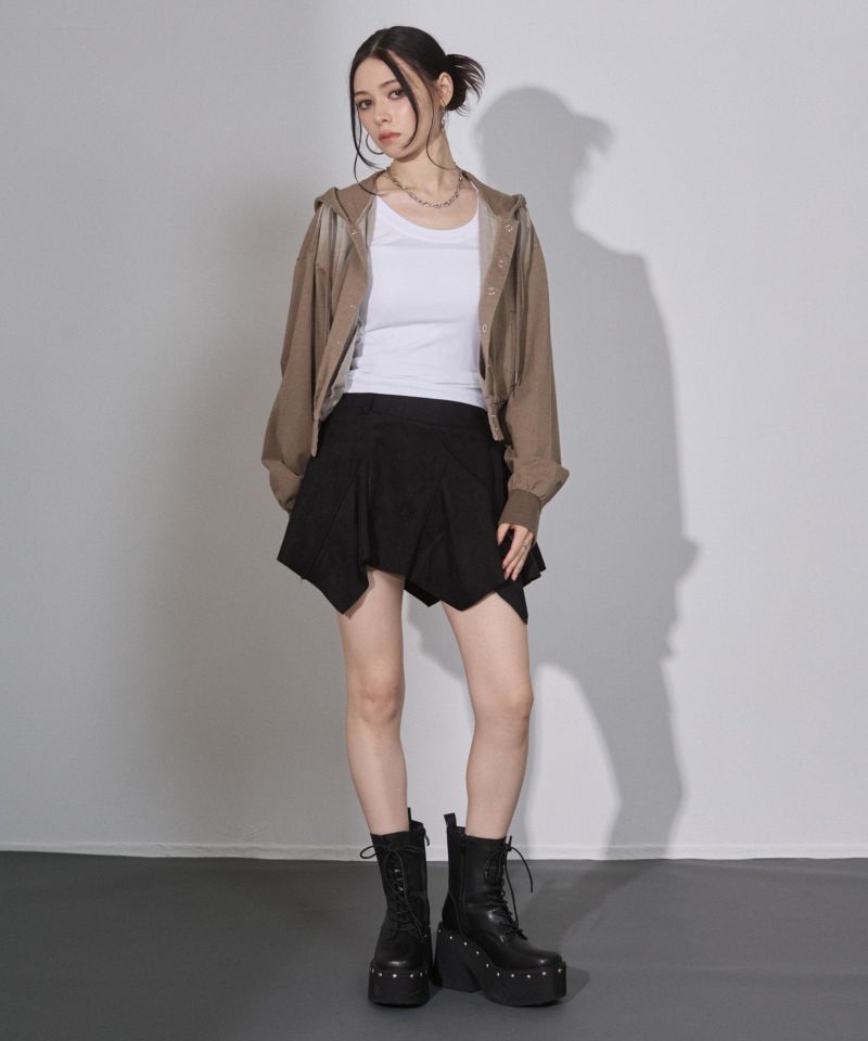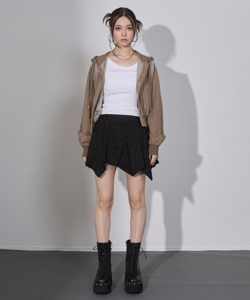 裾幅をウエストに沿うようにしたことでスタイルアップも叶います。