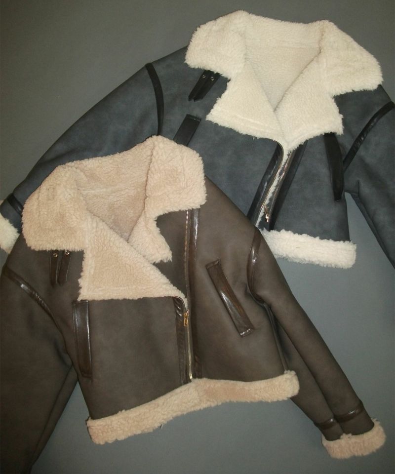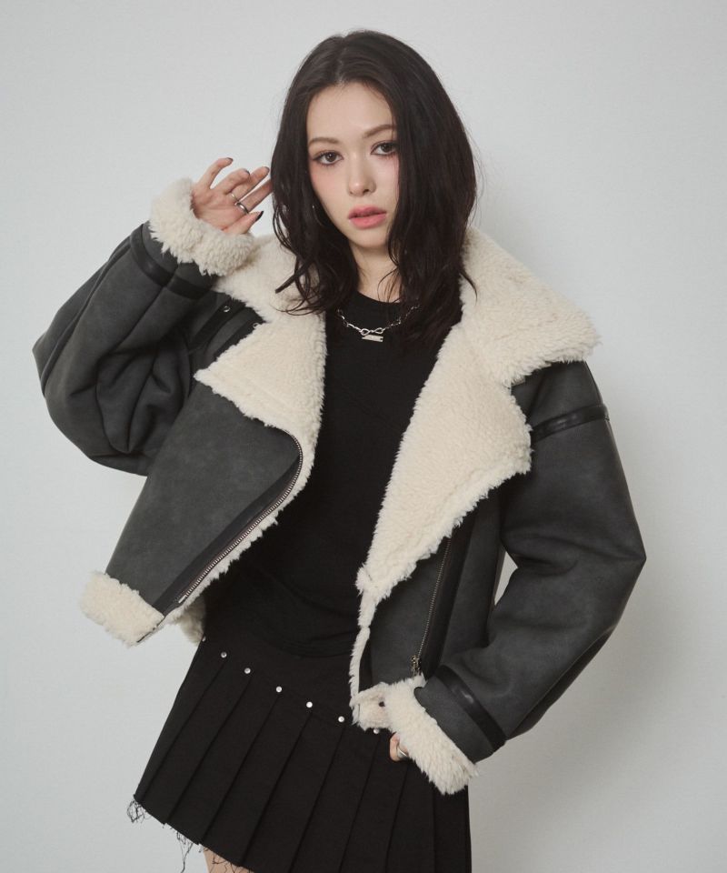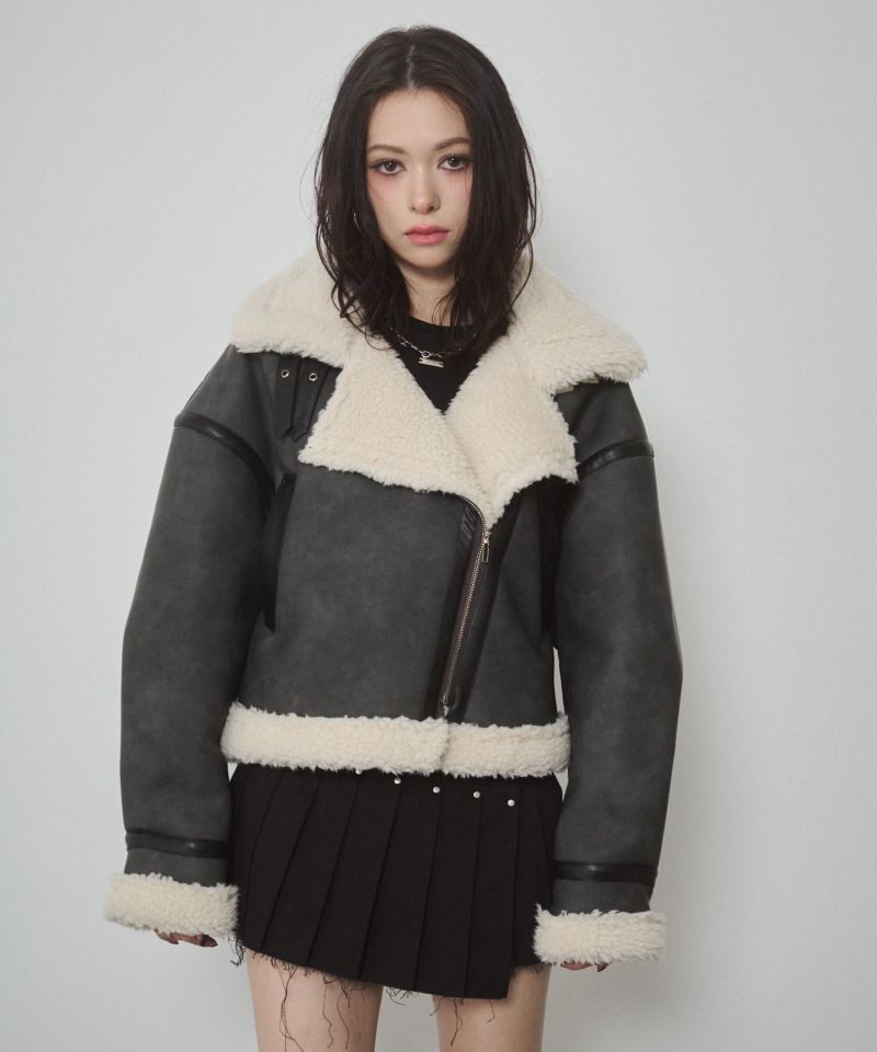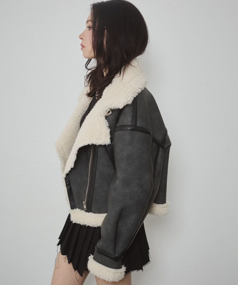 微配色のパイピングと立体感のあるボア生地が高級感のあるジャケット。