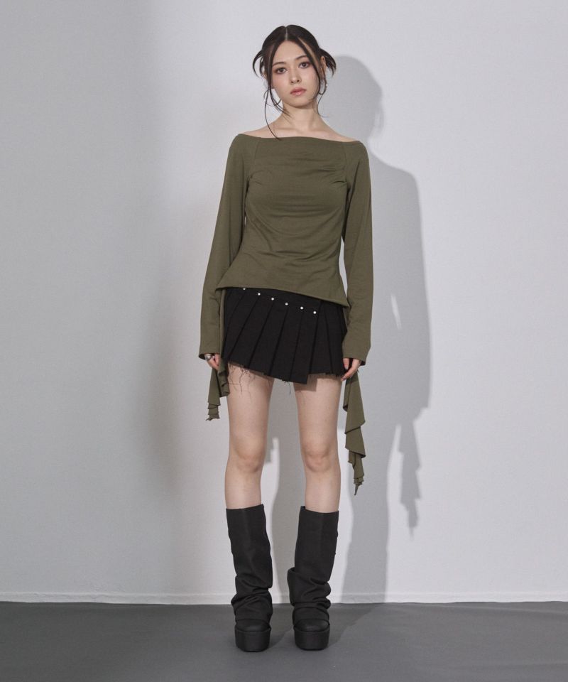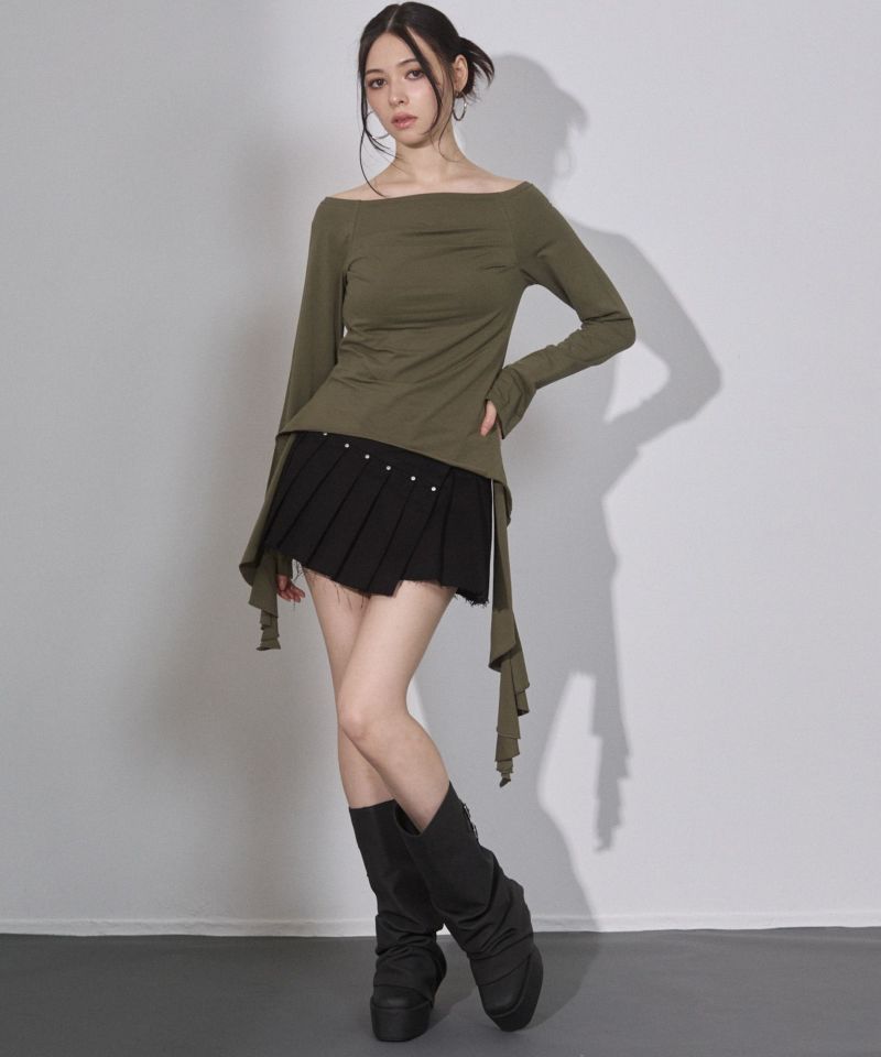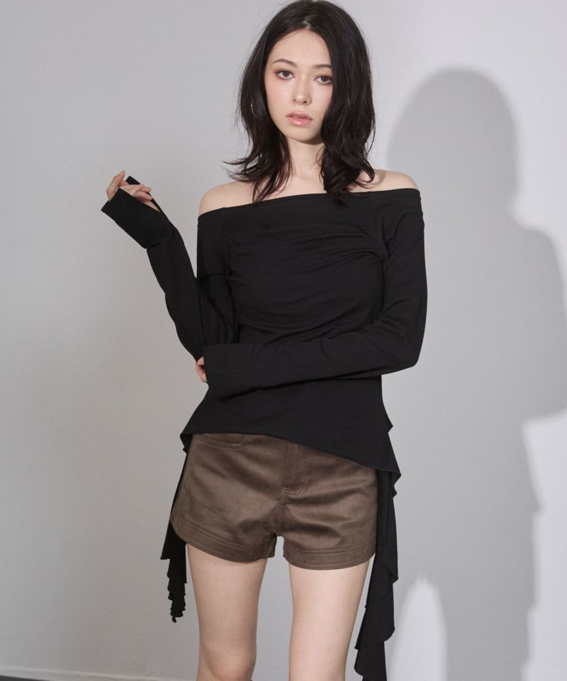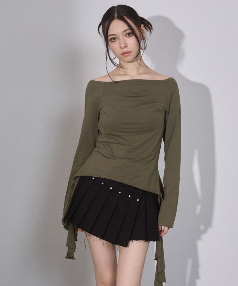 裾に左右で長さの違うフリルを付けトレンド感のあるアイテムに。