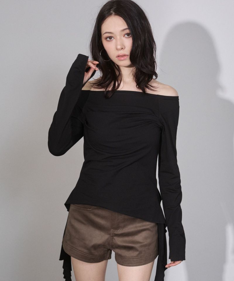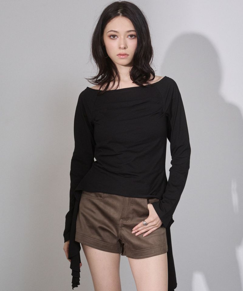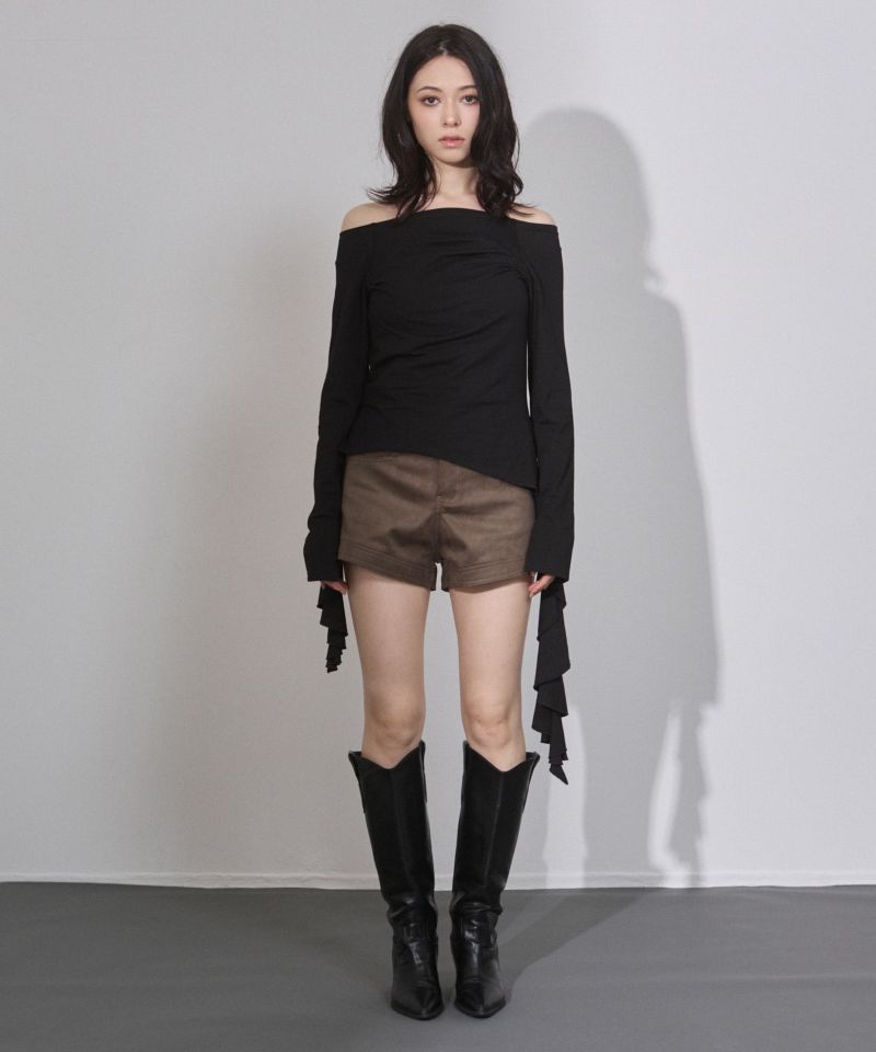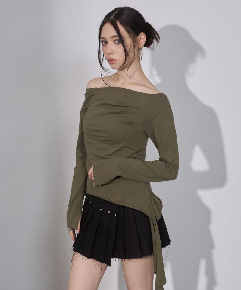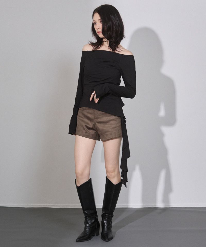 裾に左右で長さの違うフリルを付けトレンド感のあるアイテムに。