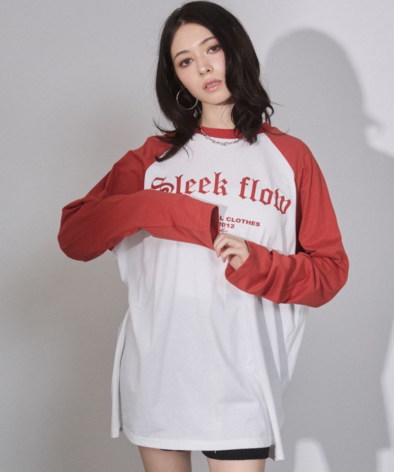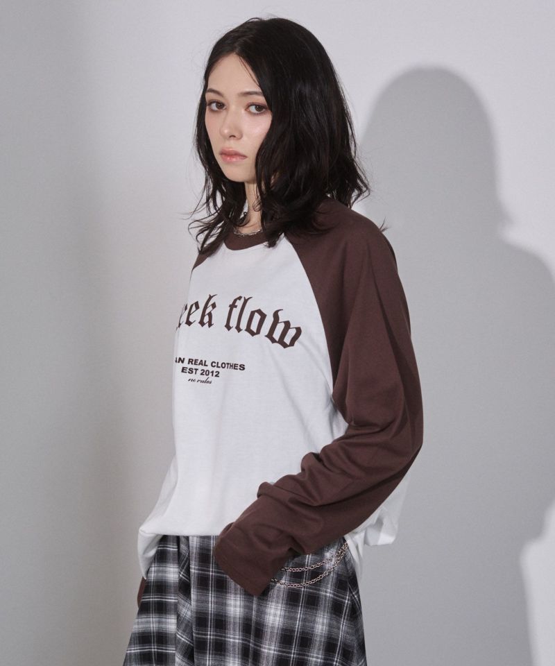 フロントのロゴプリントと背中のプリント、ラグランの配色カラーを合わせ統一感を出しました。