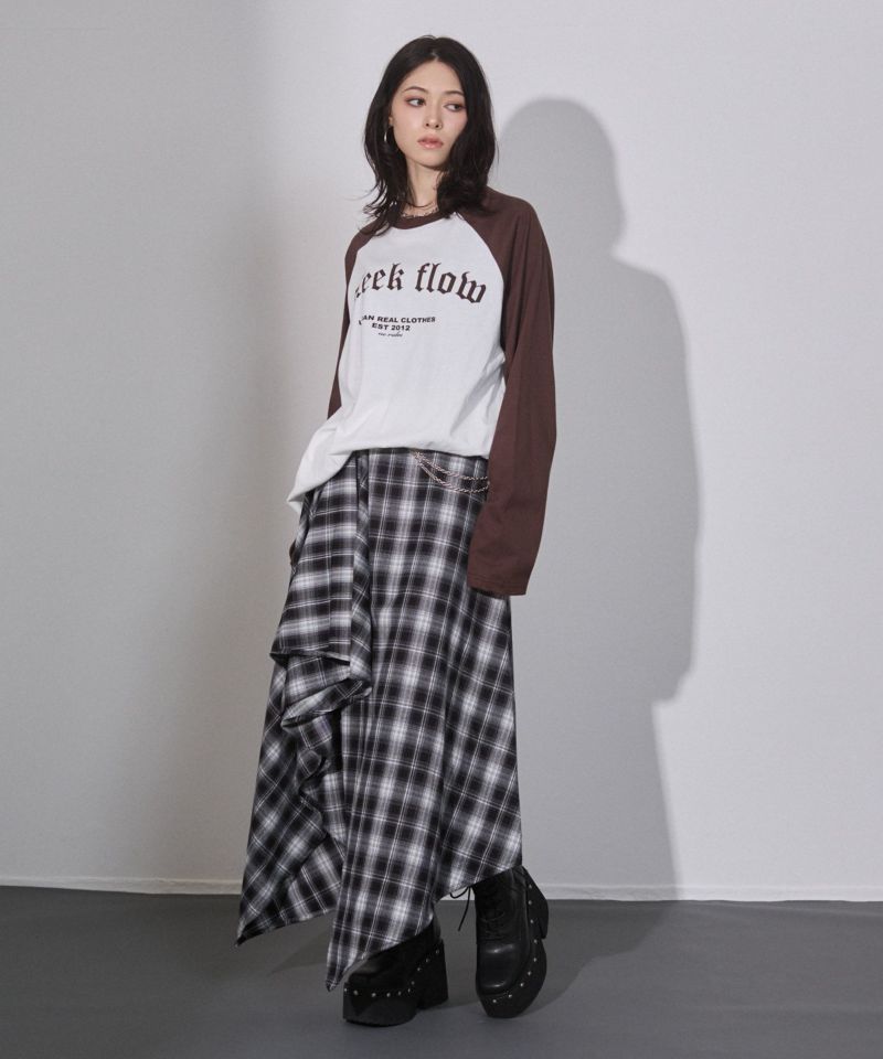ミニボトムを合わせてワンピース風な着こなしや、チェックスカートを合わせた秋らしいスタイリングもおすすめ!