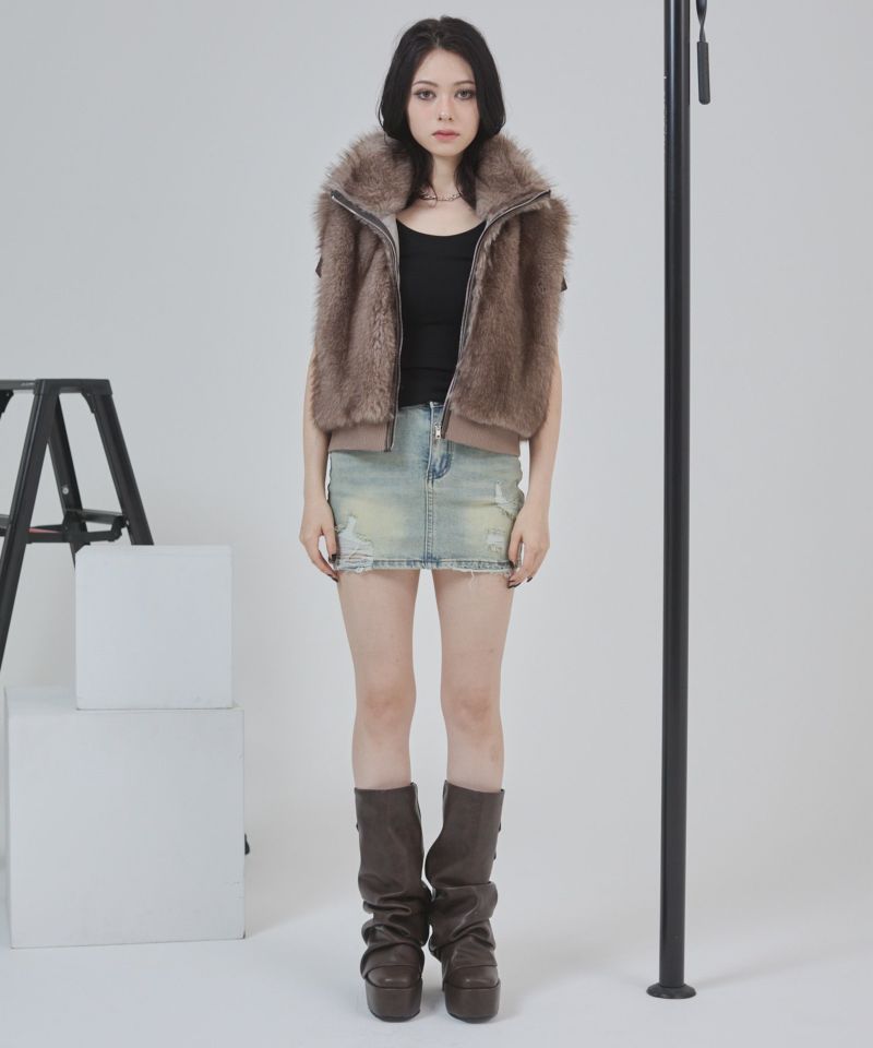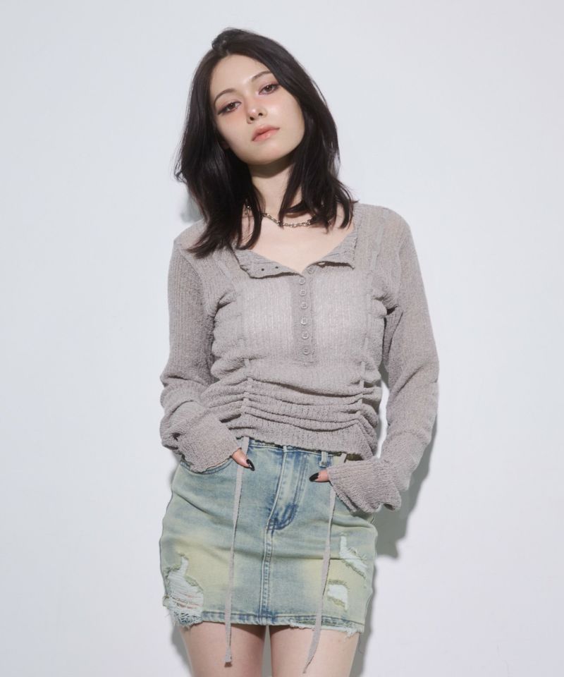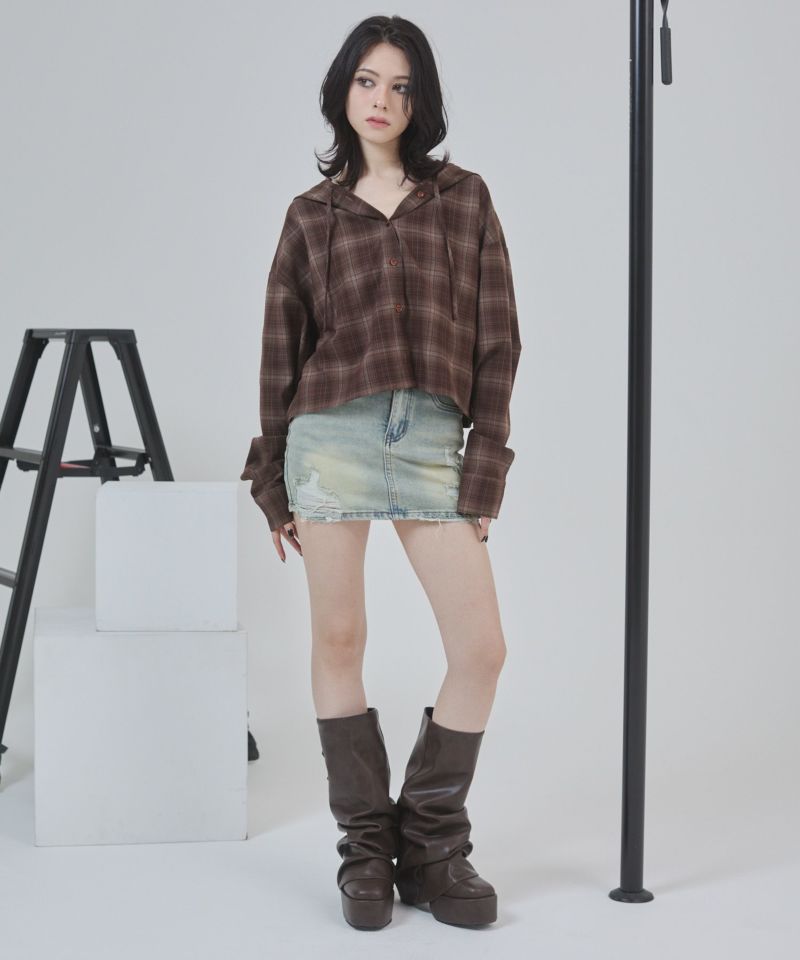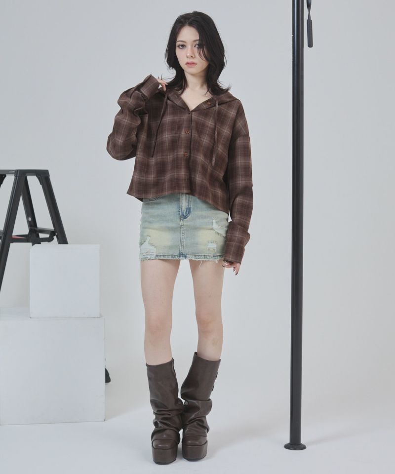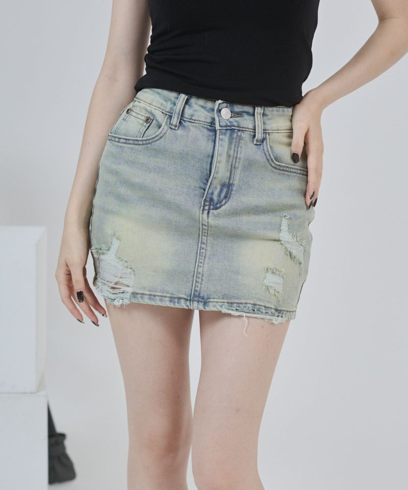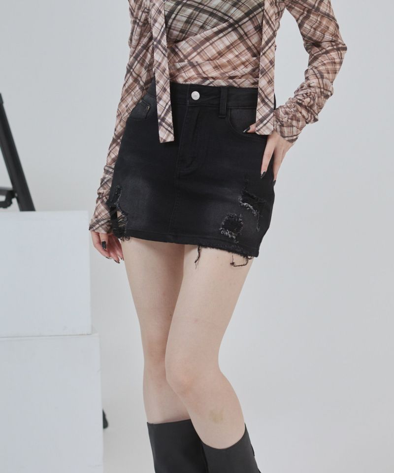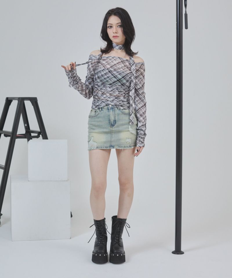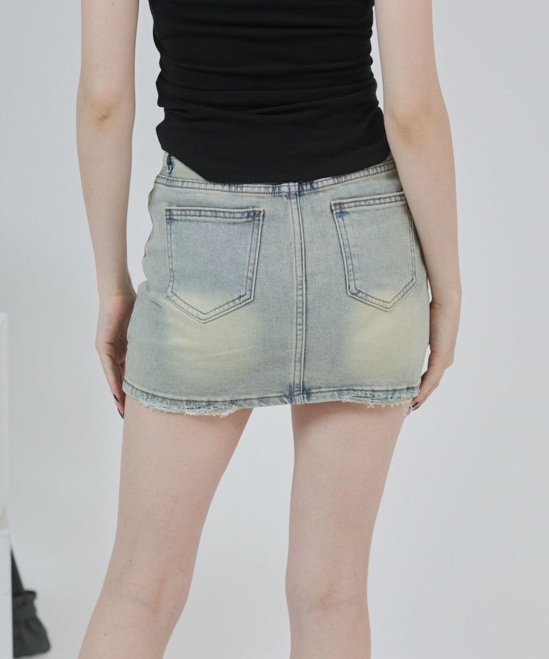 -------------------------------------------------- ■ポイント 程よいクラッシュ加工が抜け感のあるデニムスカート! ■ディティール 程よくストレッチが効くので体型問わず履きやすいスカート。 裾付近のクラッシュ加工がカジュアルな印象です。 インナーパンツ付で安心して着用出来ます。 ■スタイリング チェックアイテムと合わせてグランジ感のあるスタイリングがおすすめです。 --------------------------------------------------