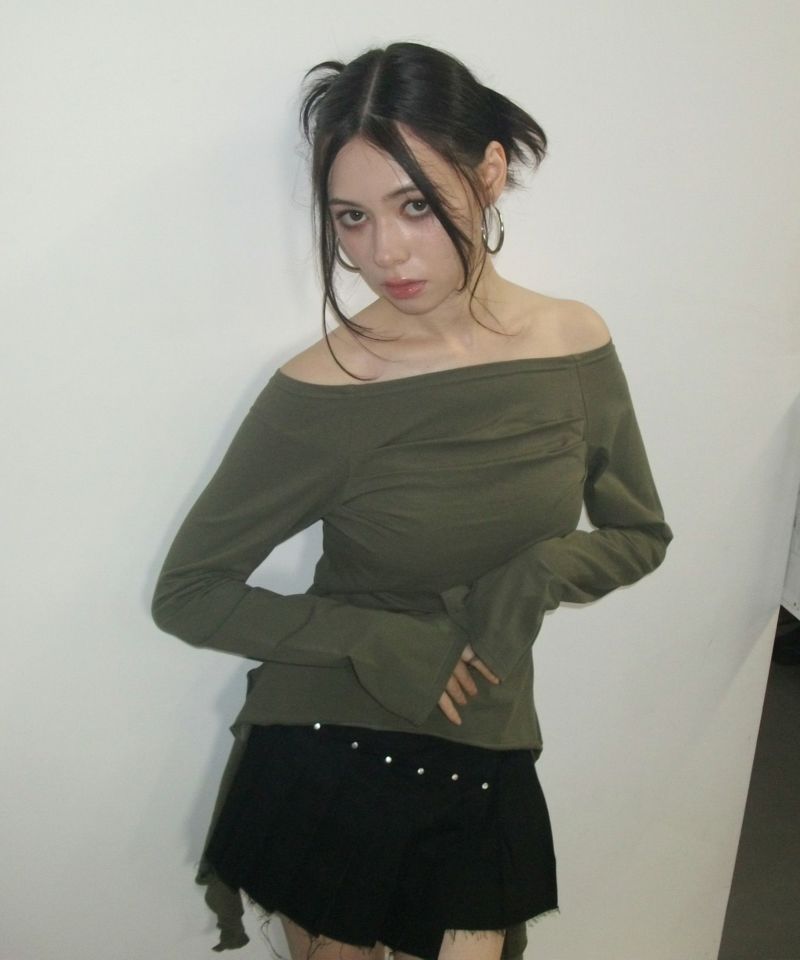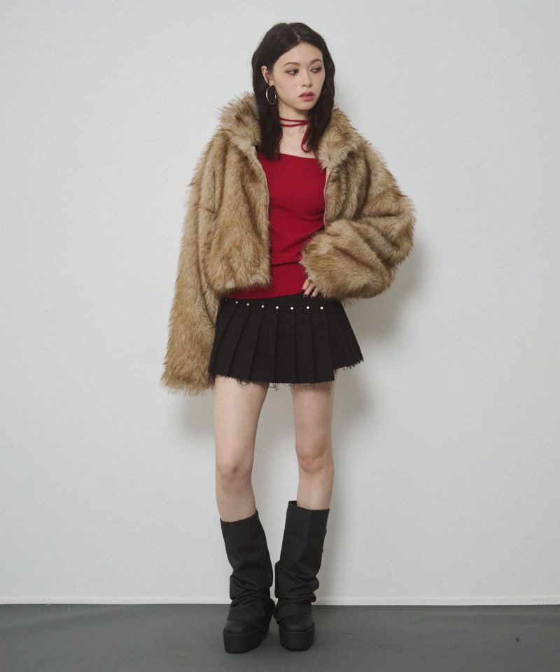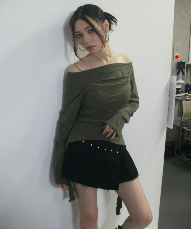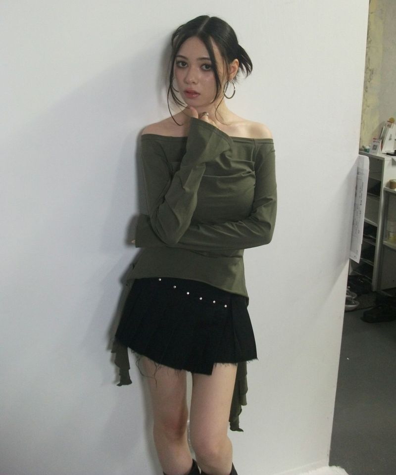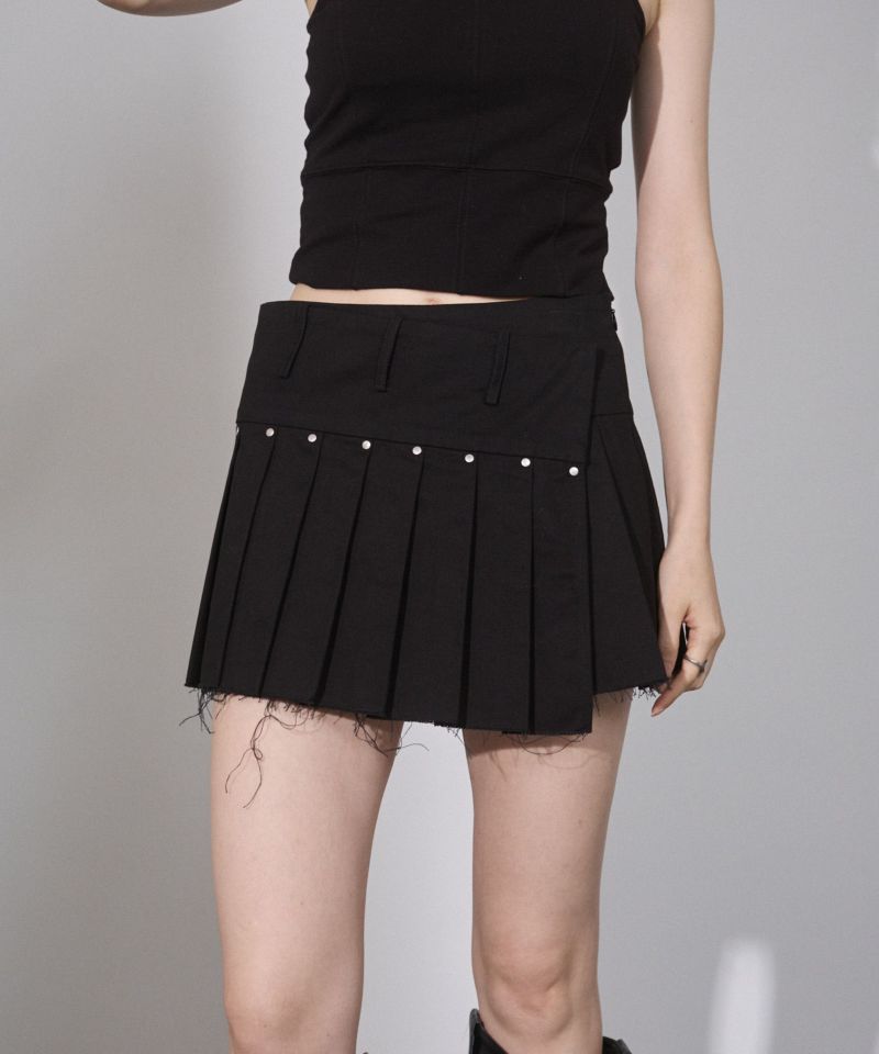 カットオフデザインでカジュアル感がありつつも、プリーツデザインで程よい甘さがプラスされバランス感が可愛いスカート。